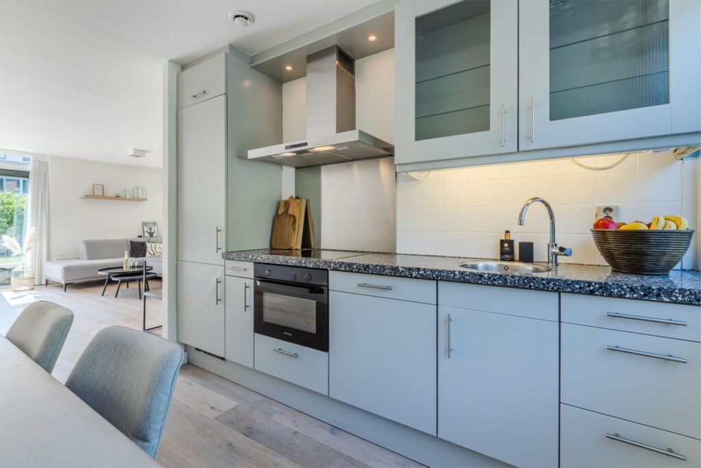 Stap de woning binnen en laat je verrassen door de ruimte en het licht. De entree geeft toegang tot het woongedeelte, de meterkast, het toilet en de trap met dimbare trapverlichting. De sfeervolle woonkamer valt op door veel lichtinval. De open keuken aan de voorzijde van de woning is onder andere voorzien van Caesarstone (kwartscomposiet) werkblad, koelkast, vriezer, combi oven (2022), vaatwasser (2025), keramische kookplaat en afzuigkap. De begane grond is geheel voorzien van een eikenhouten vloer en de muren en het plafond is strak gestuct. Onder de trap is een praktische trapkast geplaatst die ook direct extra bergruimte oplevert. Via de openslaande deuren stap je zo de zonnige achtertuin in.