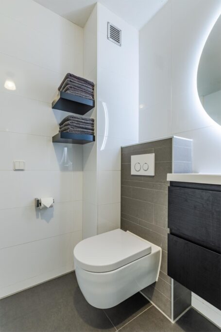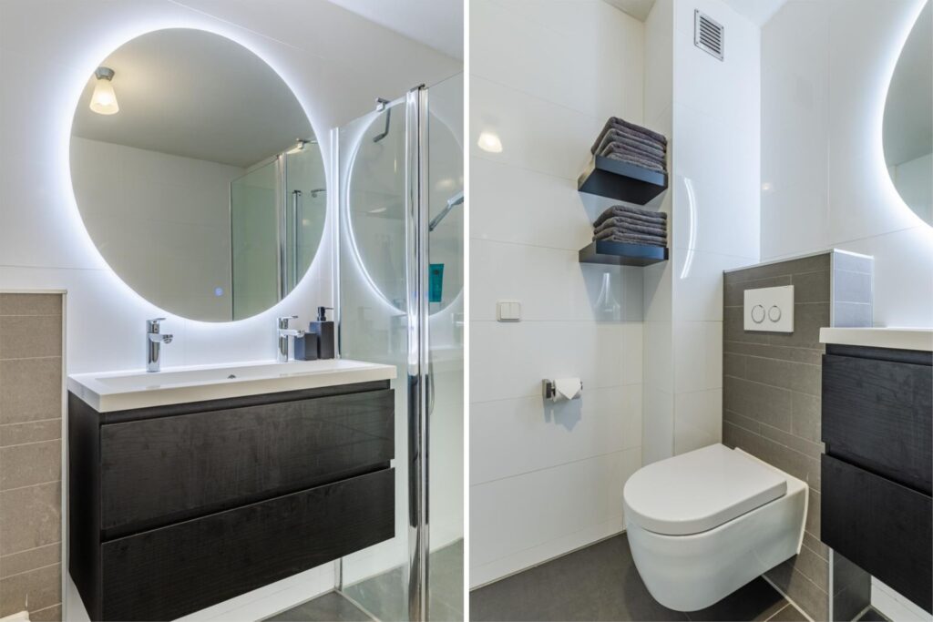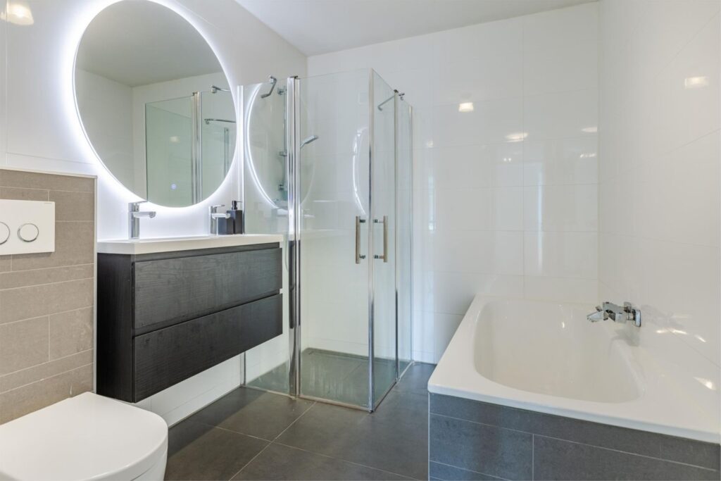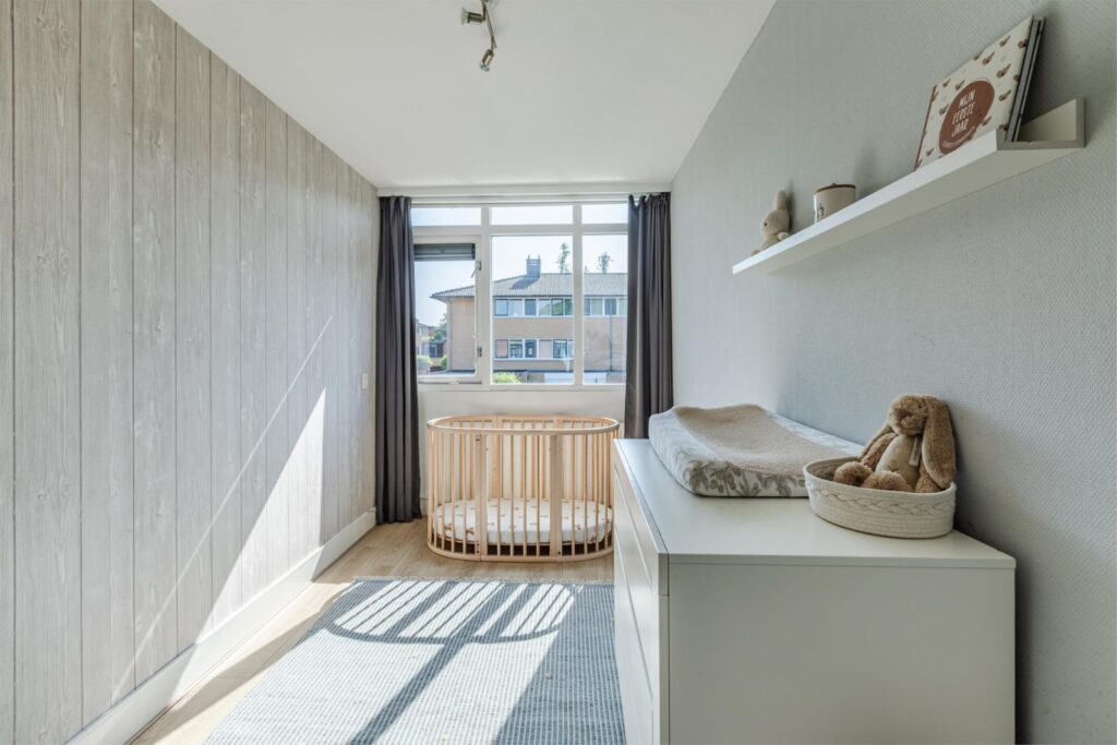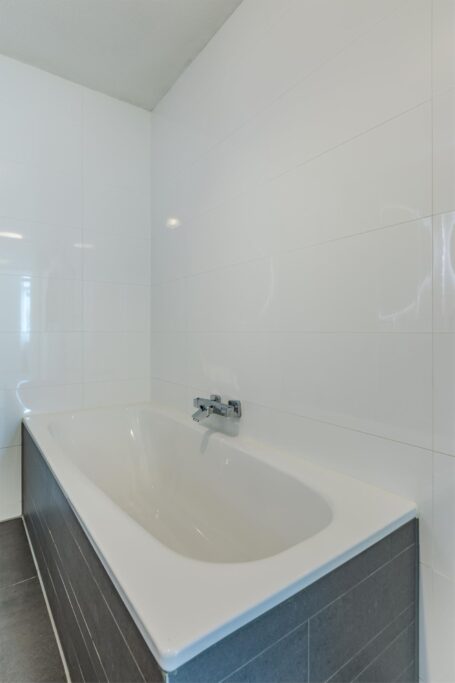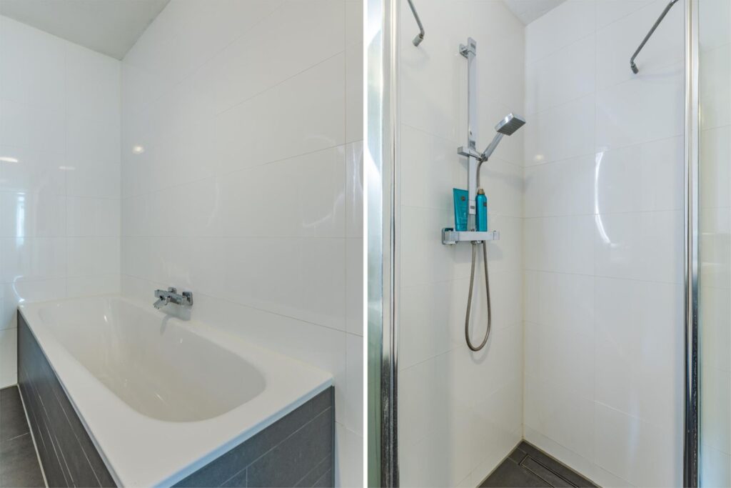 Op de eerste verdieping vind je drie nette slaapkamers, perfect voor een gezin of om in te richten als werk- of hobbyruimte. De masterbedroom biedt voldoende ruimte voor een tweepersoonsbed en een ruime kledingkast. De slaapkamers aan de achterzijde kijken uit op de achtertuin, waar veel natuurlijk licht naar binnen valt. De lichte laminaatvloer loopt door over de gehele verdieping, wat zorgt voor een gevoel van eenheid. De badkamer is een oase van rust en luxe. De complete en geheel betegelde badkamer is voorzien van een ligbad, een inloopdouche, spiegelverwarming, designradiator en een ruim wastafelmeubel met dubbele kranen. Een plek om helemaal tot jezelf te komen.
