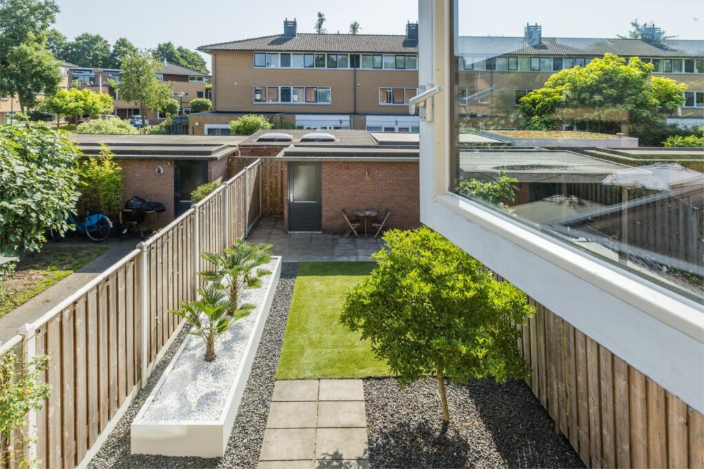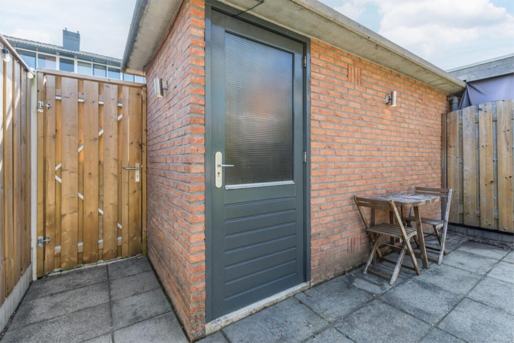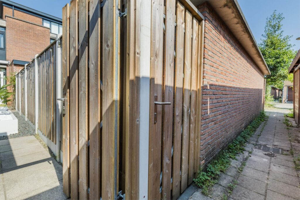 De achtertuin is fantastisch! Via de openslaande deuren loop je zo de 12,5 meter diepe tuin in. De tuin biedt voldoende ruimte voor een terras, waar je kunt genieten van buiten dineren of ontspannen in de zon. Liever even in de schaduw? Dat kan door het zonnescherm dat gevestigd is aan de gehele breedte van de woning. Geniet van de vele zonuren door de perfecte ligging op het zuidwesten. Aan de achterzijde is er een stenen berging aanwezig, deze is voorzien van elektra en is perfect voor het stallen van fietsen en tuinspullen. De tuin is tevens middels een achterom bereikbaar.