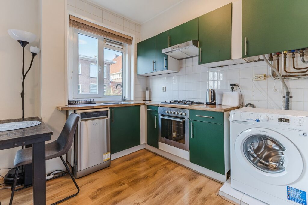 De keuken is praktisch ingericht.De slaapkamer geeft toegang tot het balkon aan de achterzijde – een heerlijke plek om van te genieten.
