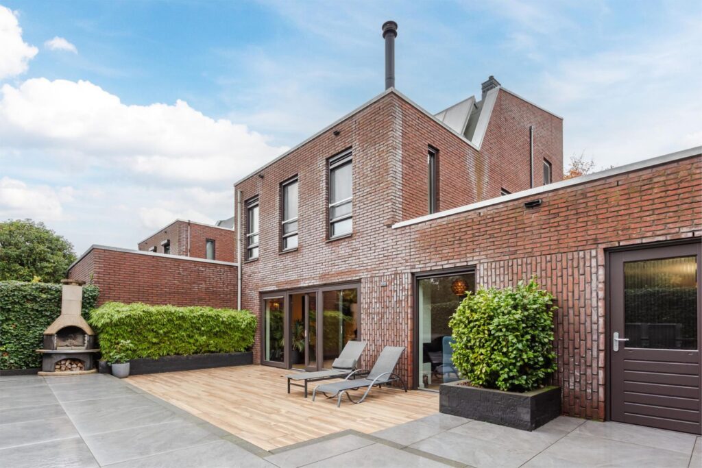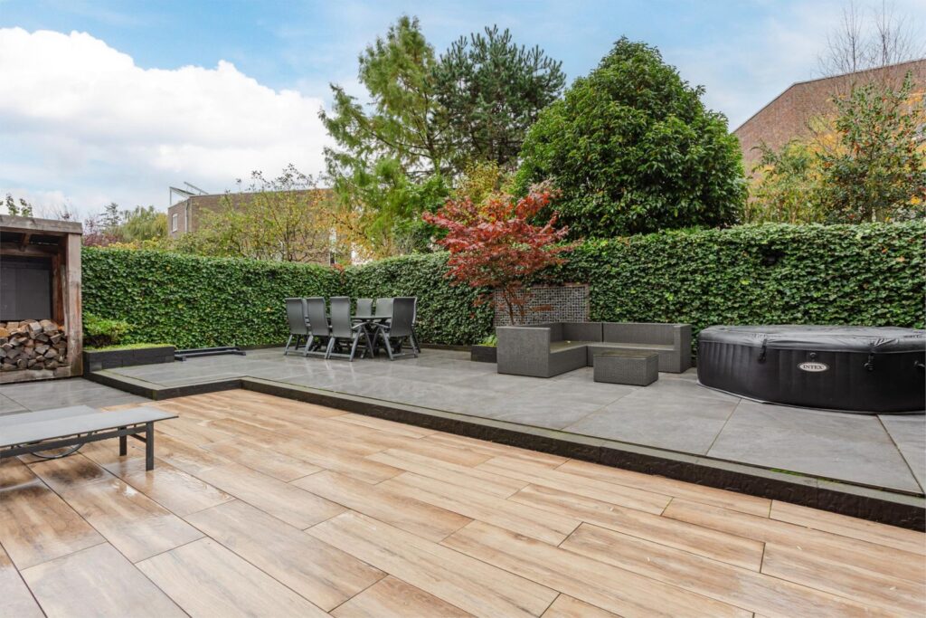 De achtertuin is in 2021 helemaal opnieuw ontworpen en aangelegd. Gelegen op het zuiden, de hele dag een plek in de zon of schaduw. Een tuin met veel groen, maar wel onderhoudsvriendelijk. Je hebt veel privacy en kijkt vrij weg in het groen. Door de schuifpui en houtlook tegels tegen de woning aan, heb je het gevoel dat buiten bij binnen betrokken wordt. Heerlijk genieten van de rust en ruimte in je eigen achtertuin? Hier kan dat.