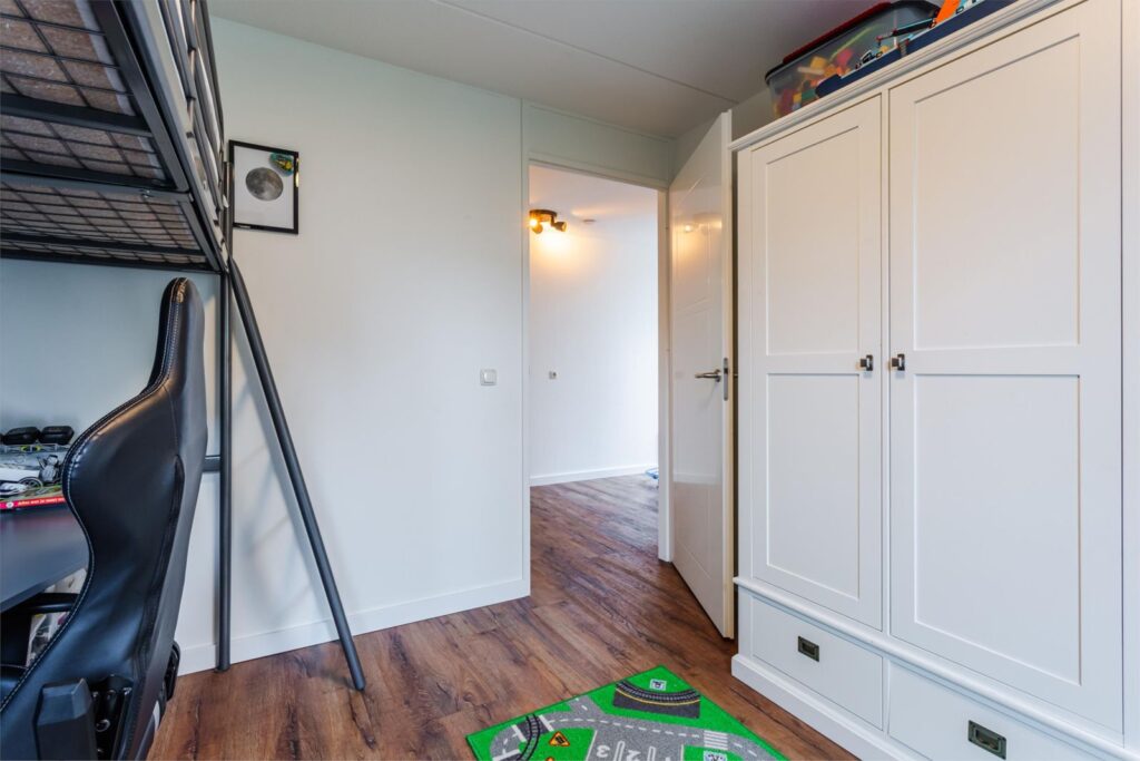 Boven wordt je wederom verwelkomt door een ruime overloop met veel licht. De kamer rechts van de trap heeft door de riante afmetingen veel mogelijkheden voor gebruik en door het grote raam aan de voorkant en een raam aan de zijkant, veel lichtinval. Aan de achterkant bevinden zich tevens twee fijne slaapkamers. Op deze verdieping is een kleine kamer aanwezig die gebruikt kan worden als walk-in closet of opbergruimte. De badkamer (uit 2021) heeft een luxe afwerking en is voorzien van een grote (regen-) douche met waterval functie en een ruim bad. De badkamer heeft een openslaand raam, vloerverwarming en automatische ventilatie (vochtsensor). Tevens is er op deze verdieping een separaat toilet aanwezig.