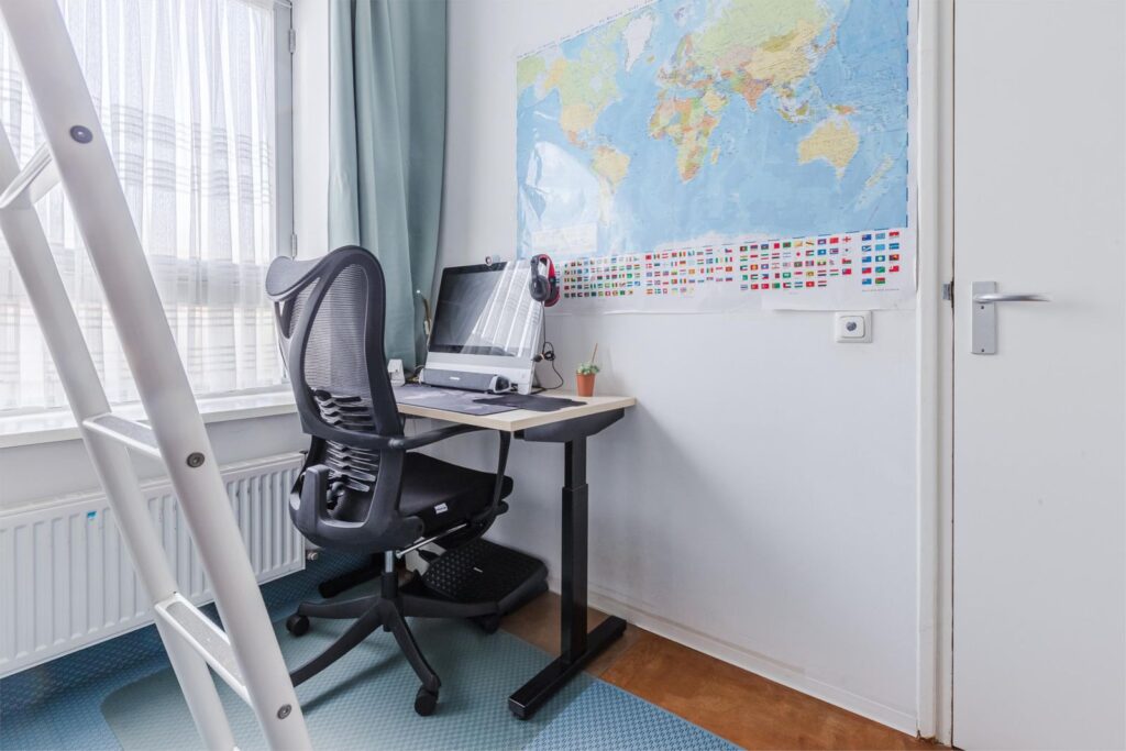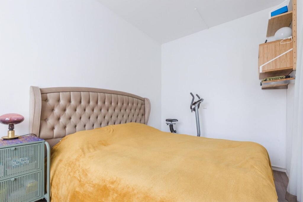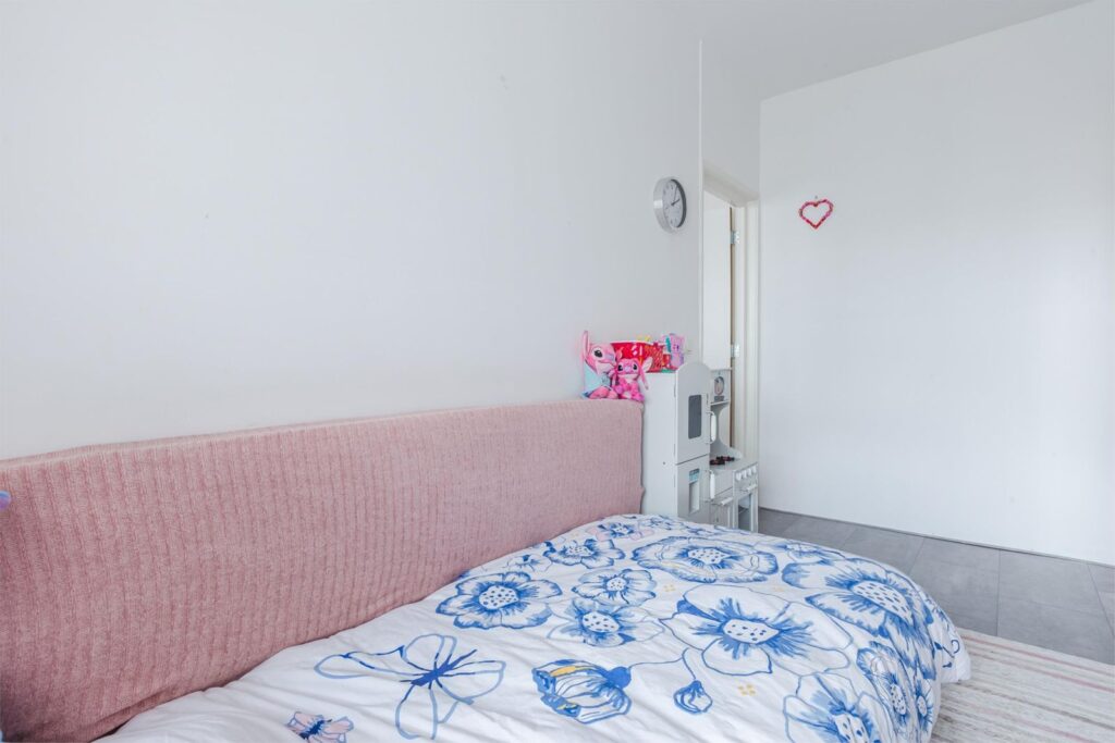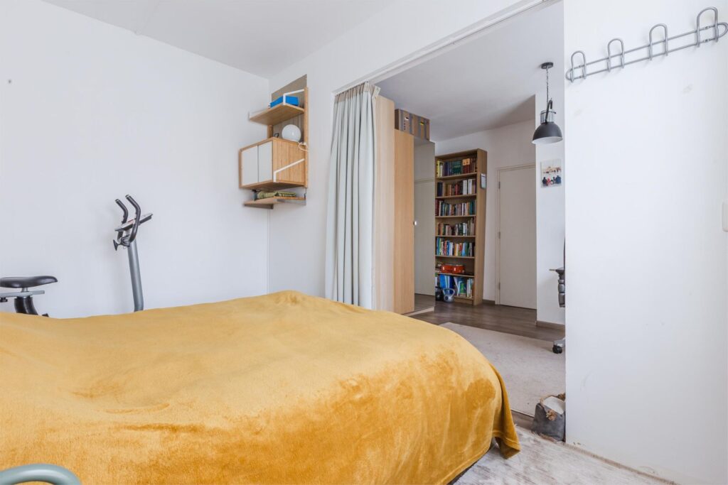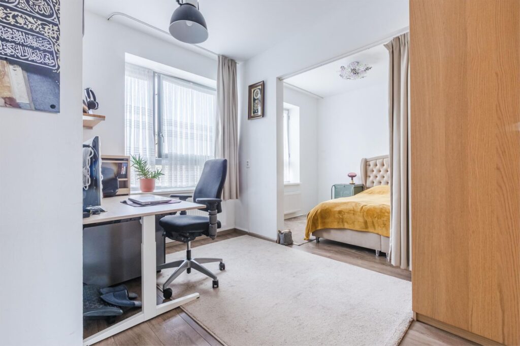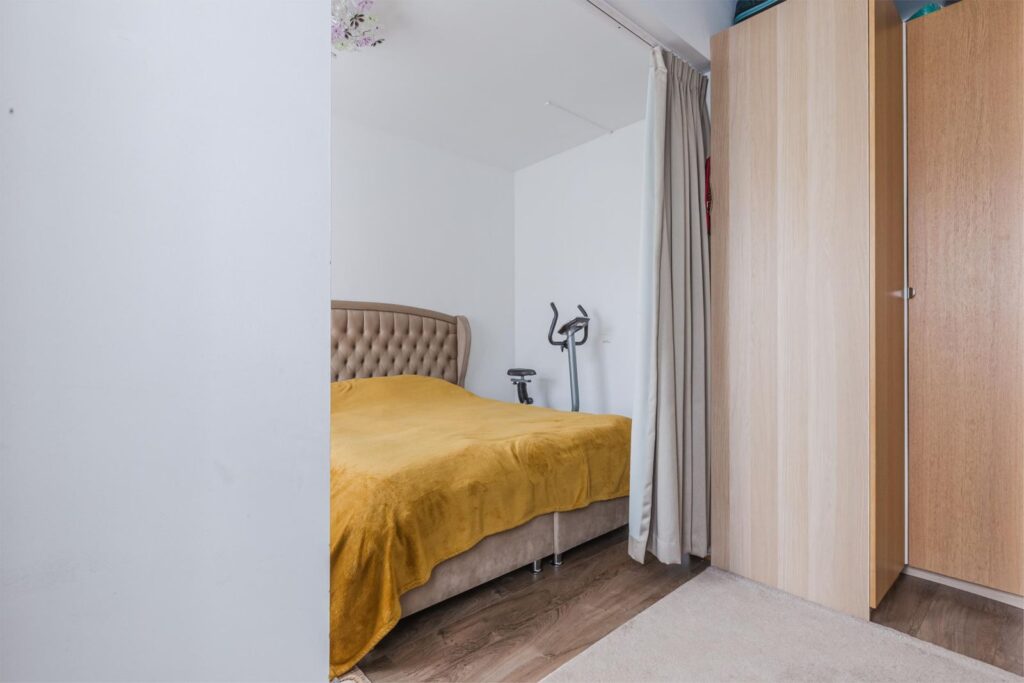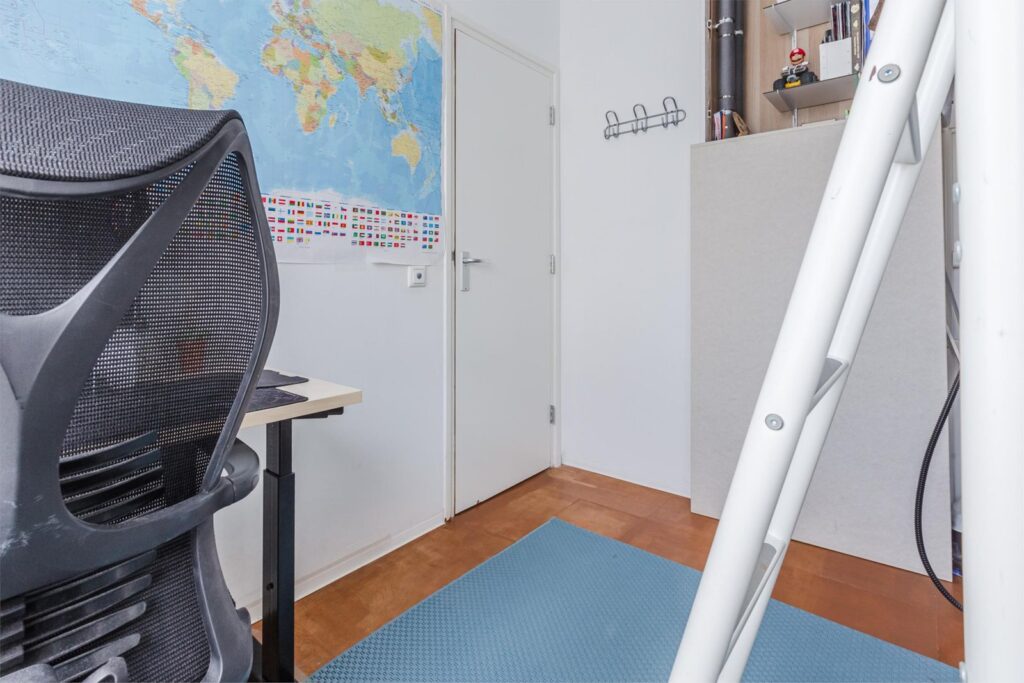 De derde slaapkamer is bereikbaar via de woonkamer en is flexibel in te richten als slaap-, werk- of hobbykamer.