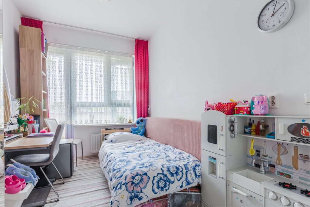The third bedroom is accessible via the living room and can be flexibly used as a bedroom, home office, or hobby room.