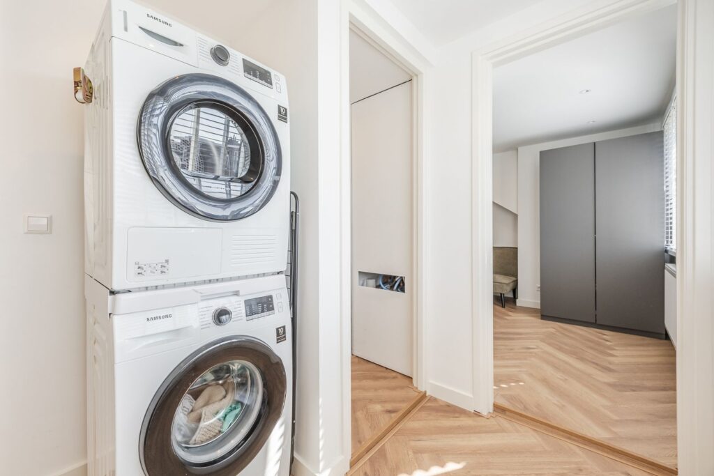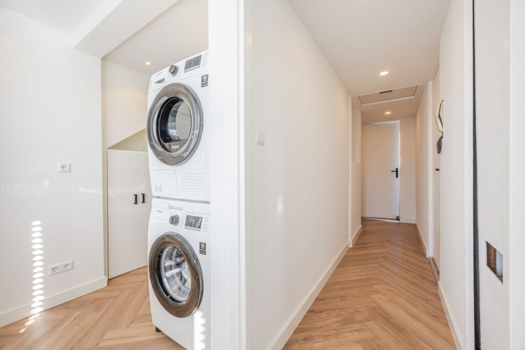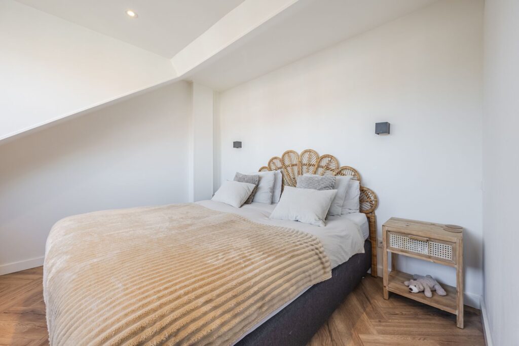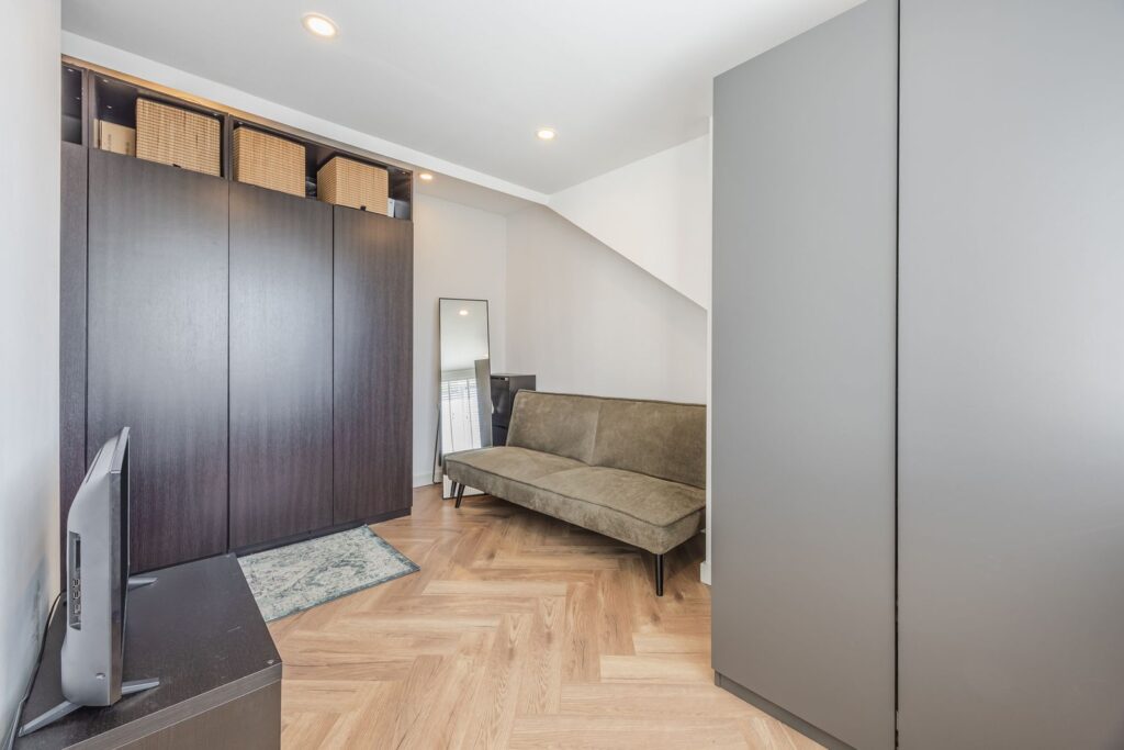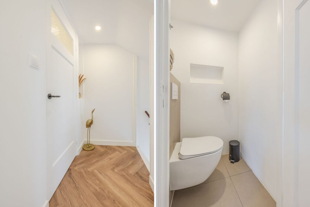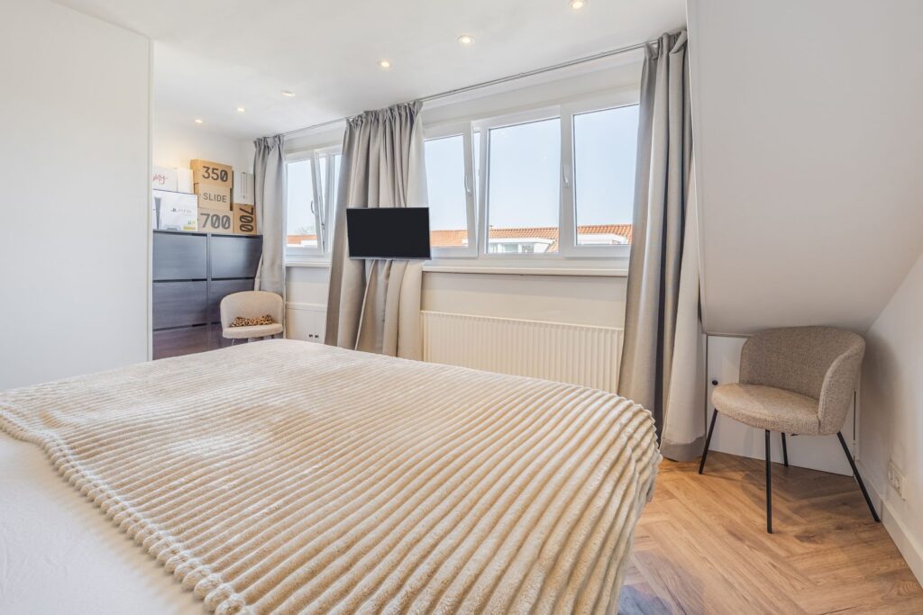 Op de tweede verdieping is de indeling praktisch en ruim opgezet. Hier bevinden zich twee royale slaapkamers, waarbij de kamer aan de achterzijde eventueel eenvoudig kan worden opgesplitst in twee kamers. In 2025 is een grote dakkapel geplaatst, waardoor extra ruimte is ontstaan en een moderne badkamer kon worden gerealiseerd. De badkamer is voorzien van een douchecabine en wastafelmeubel. Daarnaast is er een separate toiletruimte, een wasruimte en een praktische bergvliering.