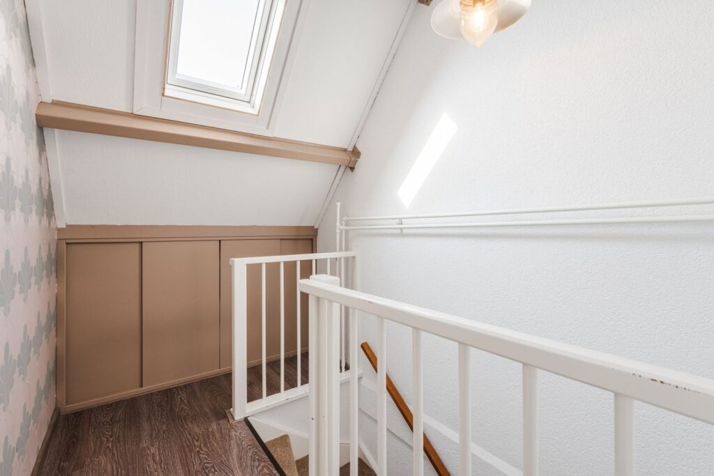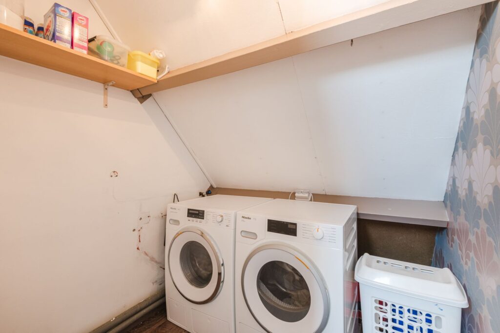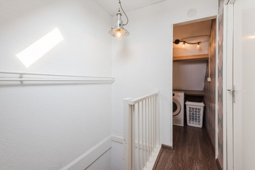 Overloop, wasruimte en en slaapkamer met een dakkapel. Tevens is er nog een vliering voor opslag van kleine spullen.