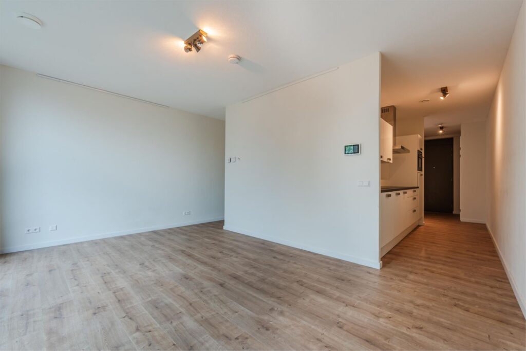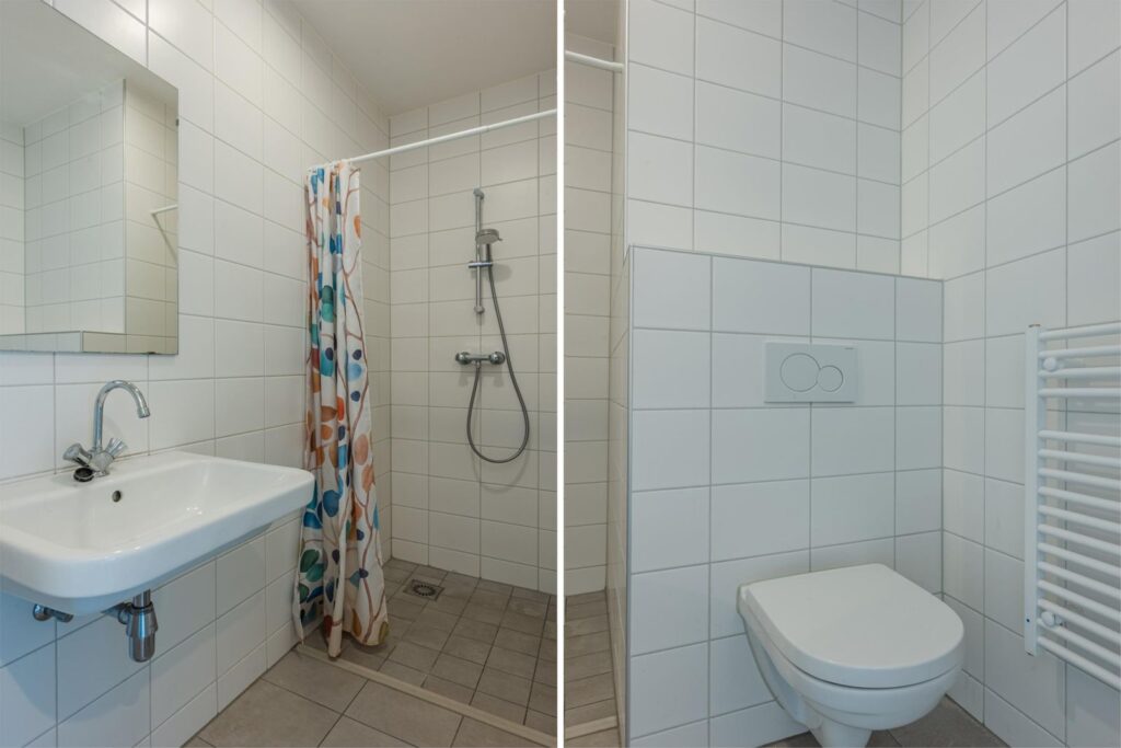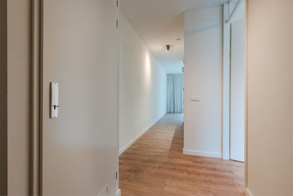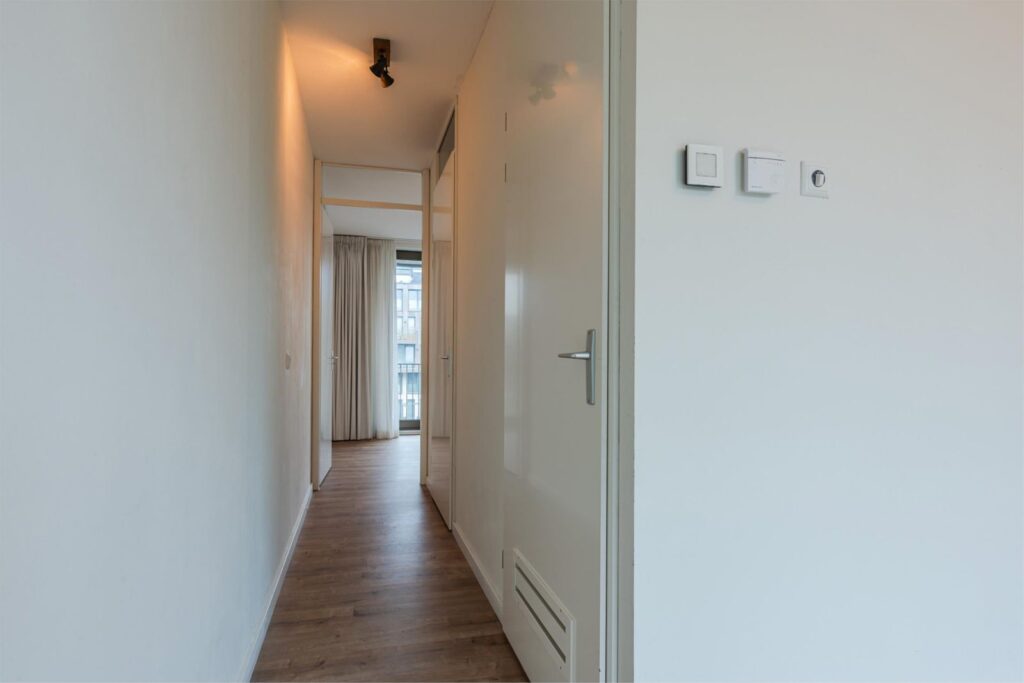 Het appartement beschikt verder over een royale slaapkamer (10,2 m2), een moderne badkamer met douche, toilet en designradiator en een aparte wasruimte. Dankzij de logische indeling voelt de woning licht en ruimtelijk aan, met een duidelijke scheiding tussen woon- en slaapgedeelte.