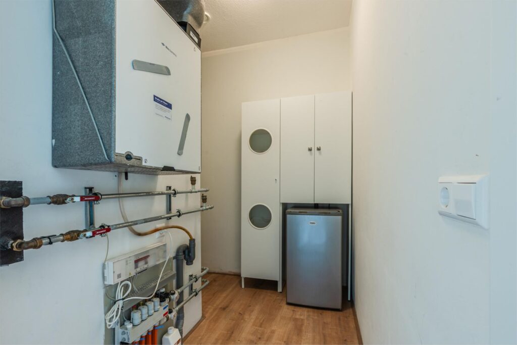 - Warmtepomp voor vloerverwarming + koelfunctie & elektrische boiler voor warm water.