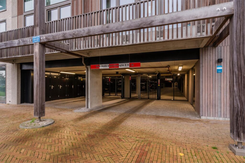 Gezamenlijke entree met videofooninstallatie, brievenbus-kasten, trapopgang en lift, parkeren in ondergelegen garage.