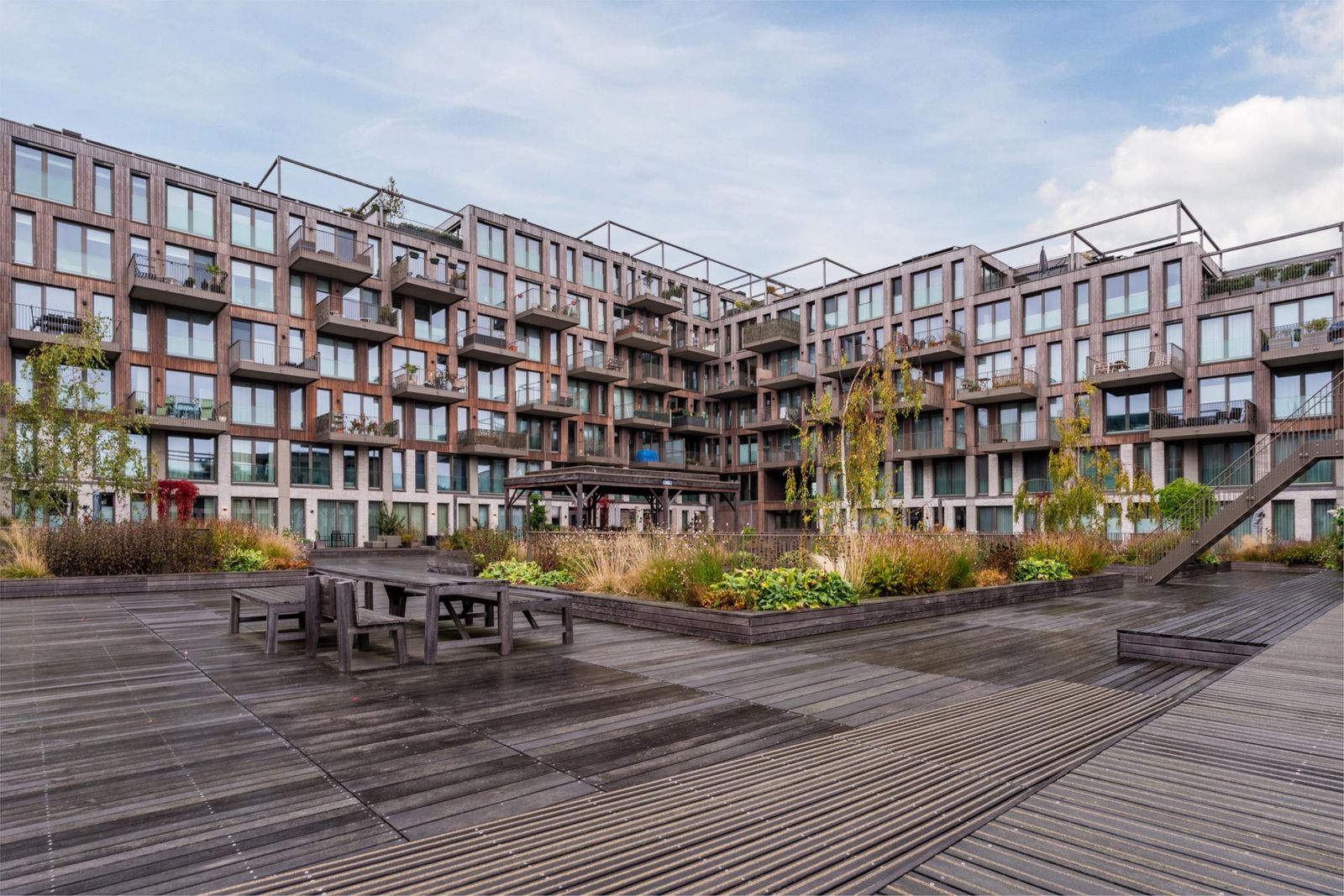 - 1 slaapkamer aan de binnenzijde van het gebouw.