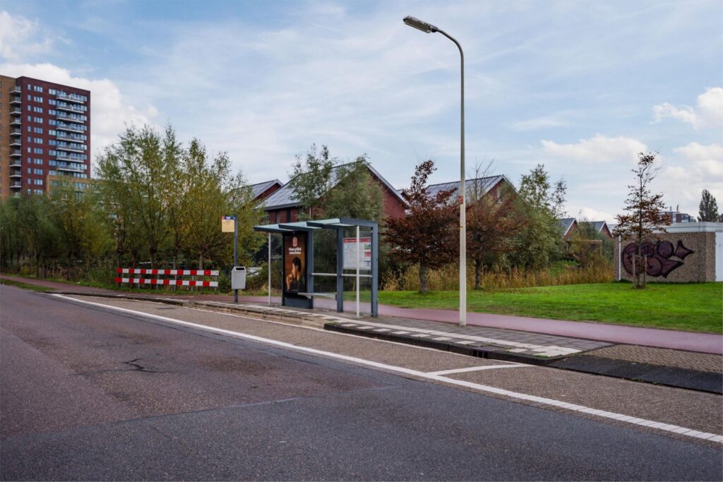 - aan rustige weg, in woonwijk, vrij uitzicht