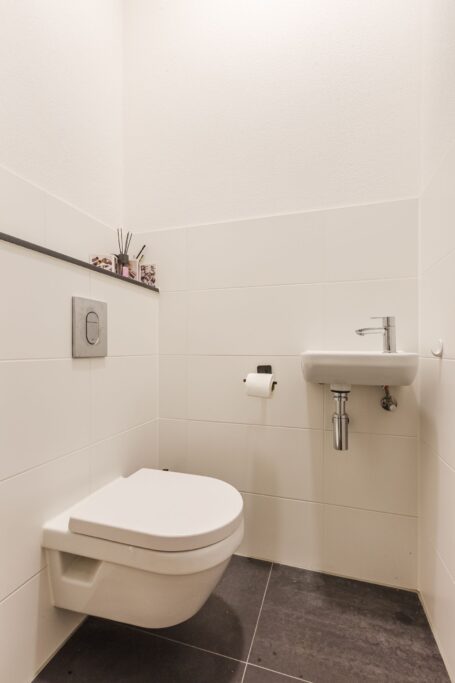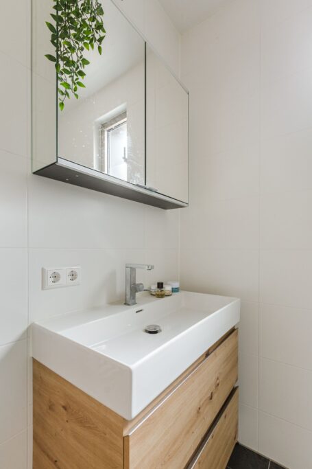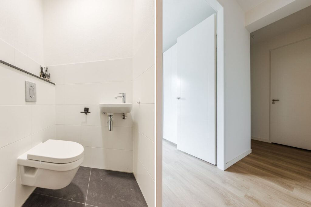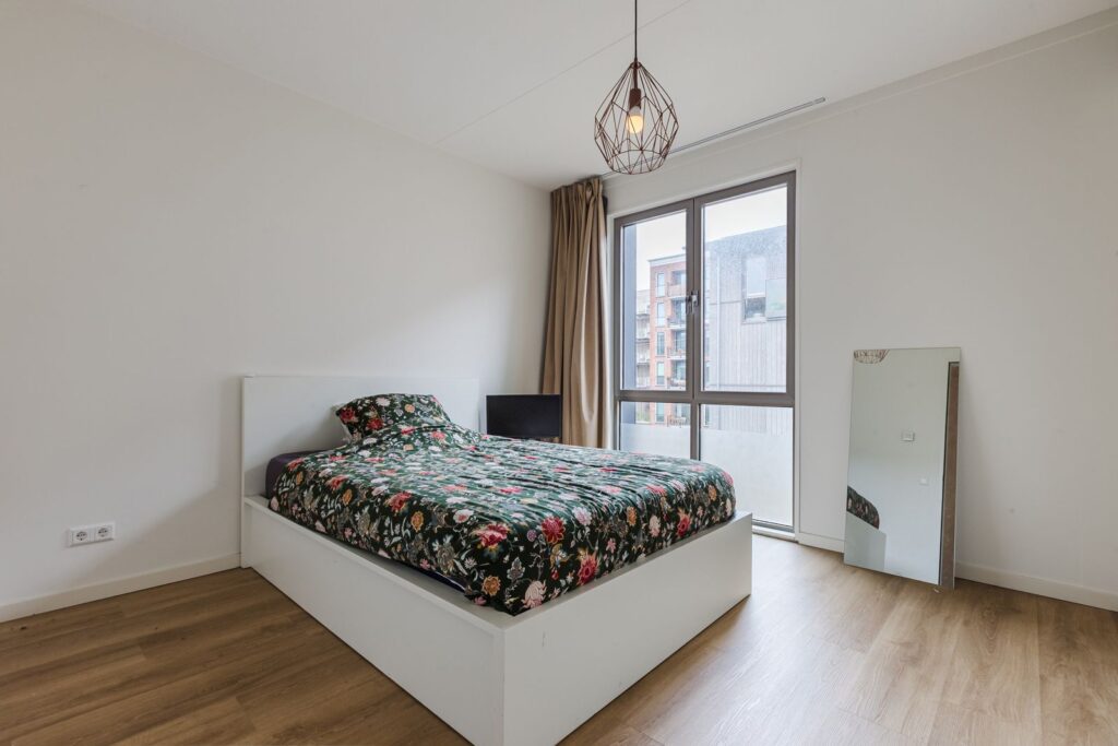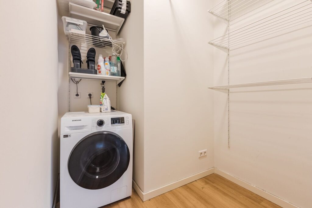 De moderne badkamer is fraai afgewerkt met een ruime inloopdouche en een wastafelmeubel. Daarnaast is er een aparte toilet en en verder is er een praktische berging met aansluiting voor wasmachine en droger, plus extra opbergruimte. Het gehele appartement is voorzien van vloerverwarming- en koeling.