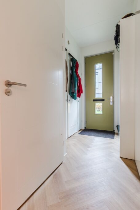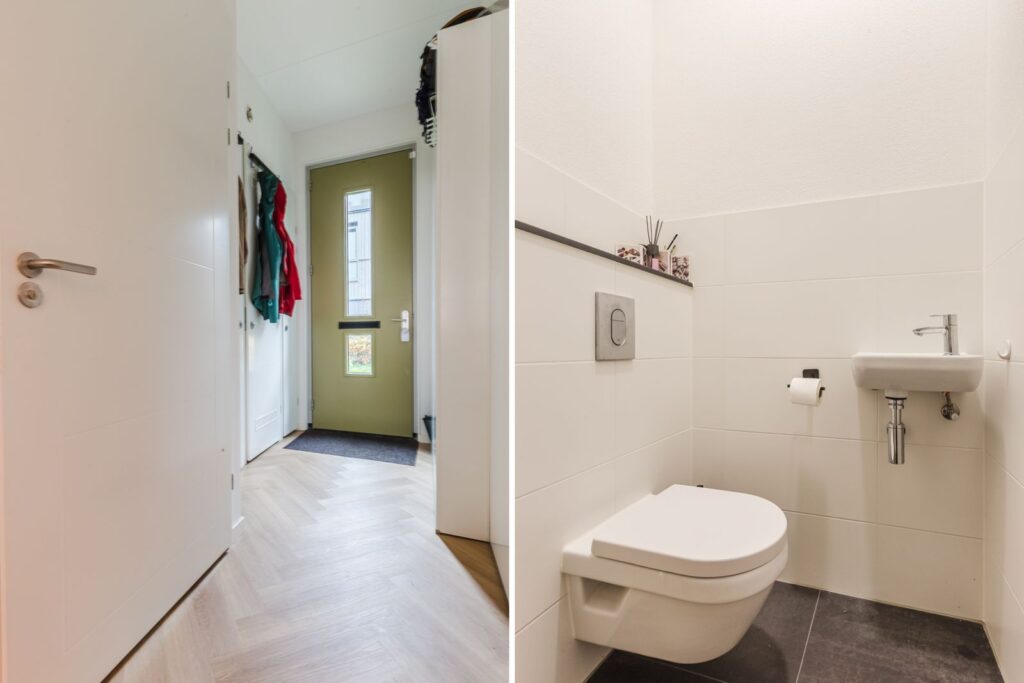 Je betreedt de woning via de voortuin en je eigen entree aan de voorzijde. In de ruime hal is plaats voor de garderobe en bevindt zich een separaat toilet.