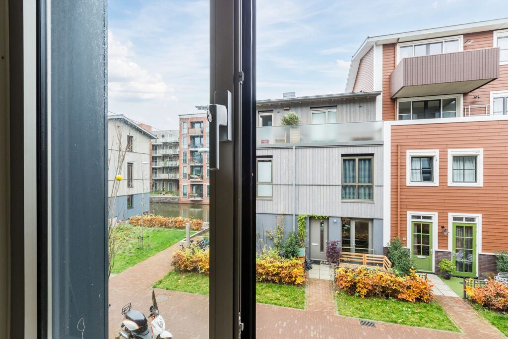 Located on Libau Island, the newest car-free street in the Houthavens, this remarkable home sits in a beautiful waterside setting—perfect for those who appreciate space, light, and outdoor living. With a living area of around 90 m² spread across two full floors, a spacious living area, three bedrooms, a sunny garden, and the possibility to moor your own boat, the property combines comfort with a uniquely serene waterfront experience. An additional 6 m² of outdoor space can be created by installing a private jetty. Here, you enjoy peaceful surroundings while remaining within easy reach of every convenience.