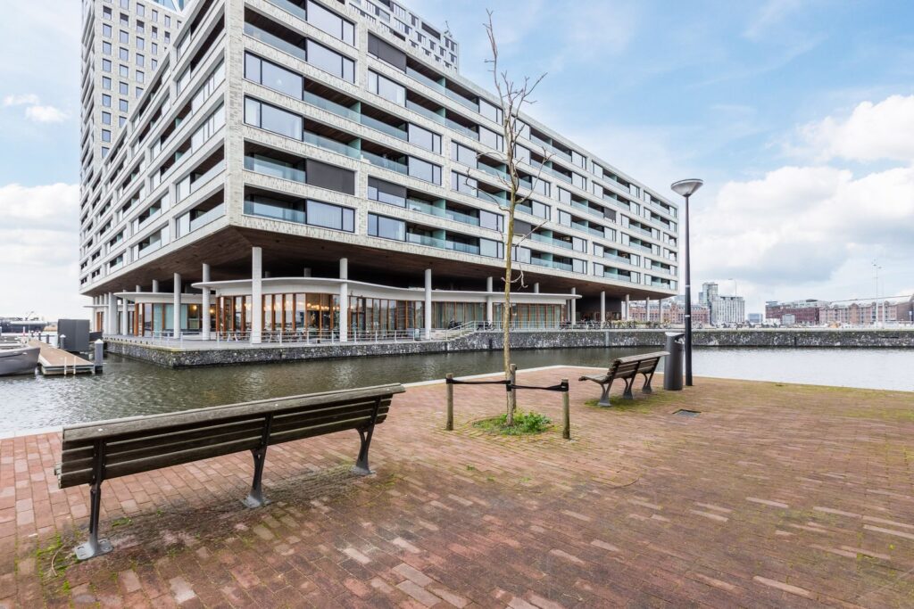 The neighbourhood lies about 2 kilometres from Amsterdam Central Station, between the Spaarndammerbuurt and the IJ. Within walking distance you’ll find the lively Spaarndammerstraat, Westerpark, and the Haarlemmerdijk with its wide range of shops, gyms, and cafés. The Houthavens themselves offer excellent waterside dining, including Restaurant Vessel, Brasserie George, and Ferry.