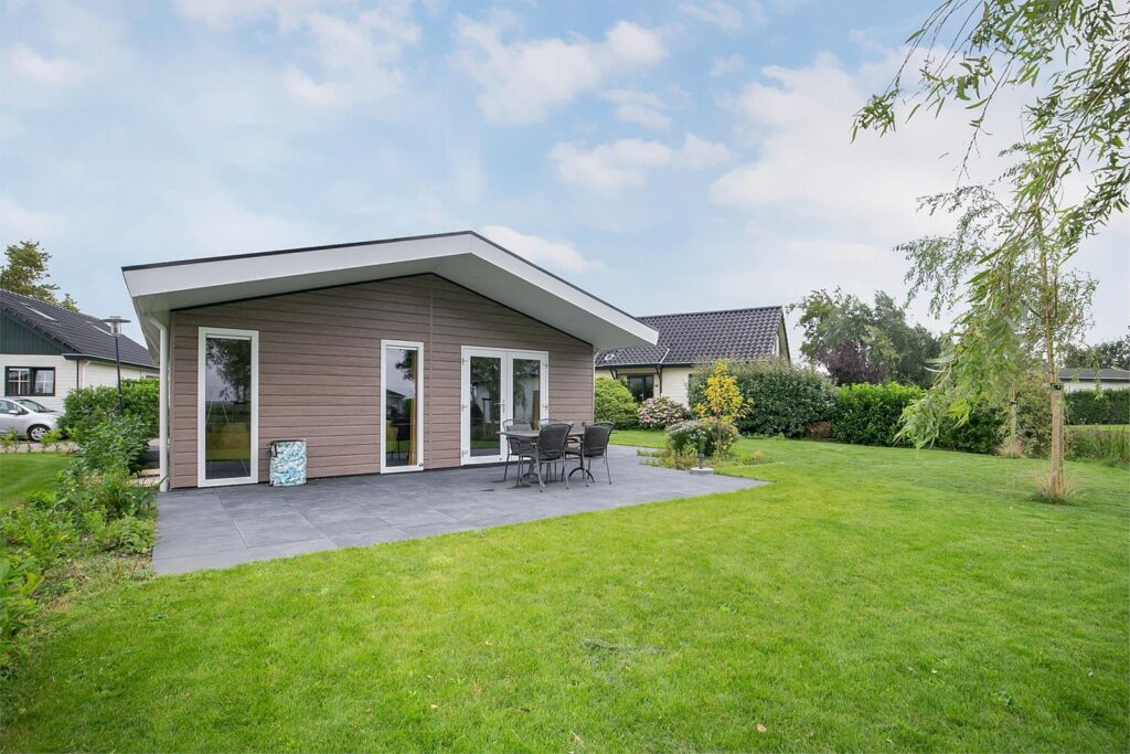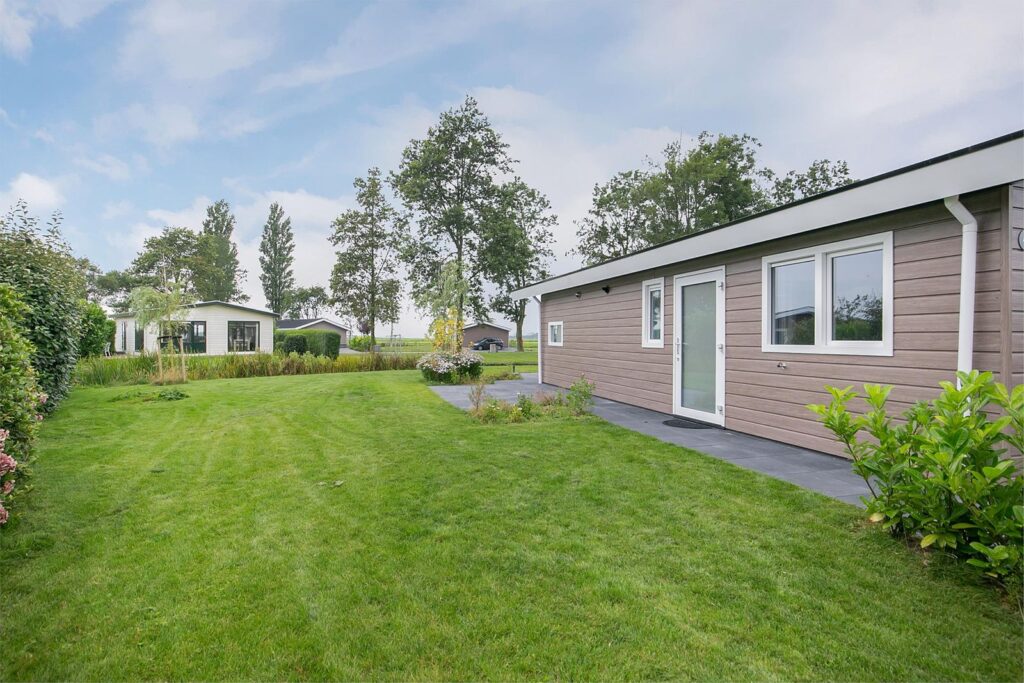 Luxe 5 jaar jonge 6 persoons vakantiewoning op een ruim perceel EIGEN GROND, met eigen parkeerplaats voor de woning en een grote groene tuin aan vaarwater!