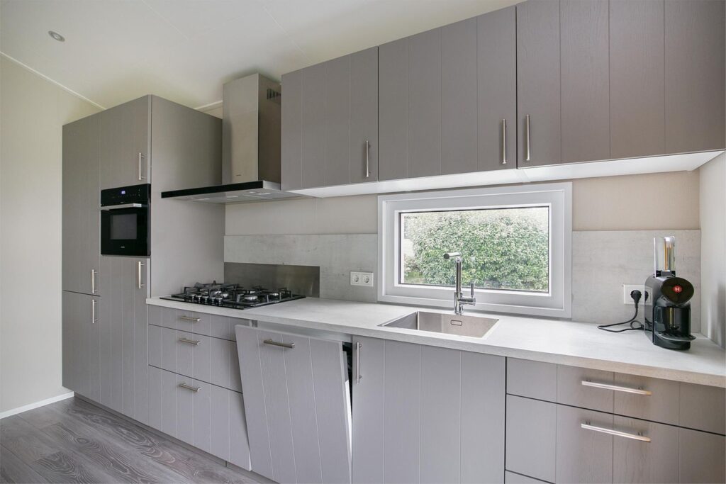 De keuken is voorzien van alle gemakken en inbouwapparatuur zoals een vaatwasser, een mooi 5 pitsgasfornuis met wok brander, een prachtige afzuigkap en een koelkast met een vriesvak en veel opbergruimte in kasten en grote lades. De CV ketel uit 2020 is ook geplaatst in een keukenkast.