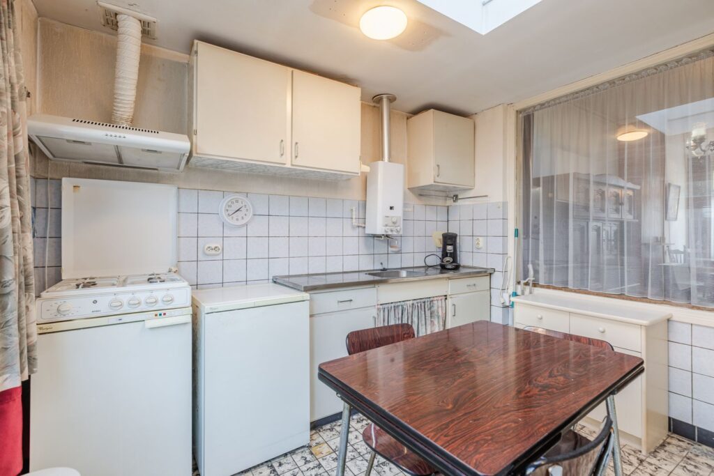 De woning nodigt uit om - net als de rest van de straat- het woonoppervlak met een extra verdieping uit te breiden.