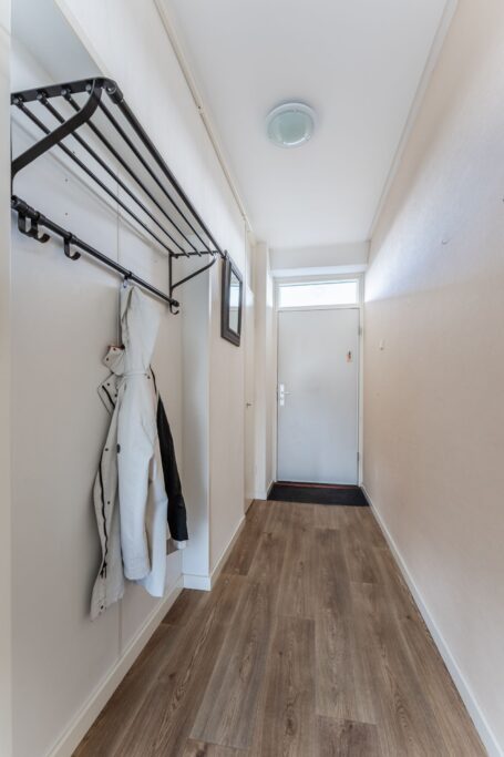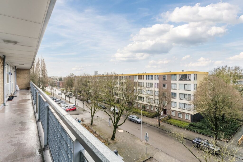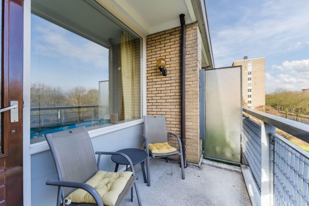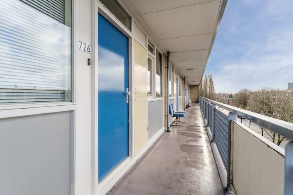 Via de galerij bereik je de voordeur van het appartement. Het valt direct op dat het complex met zorg wordt bewoond. De galerij biedt daarnaast een prettige plek waar je in de middag en avond nog even buiten kunt zitten en kunt genieten van de rust en het uitzicht.