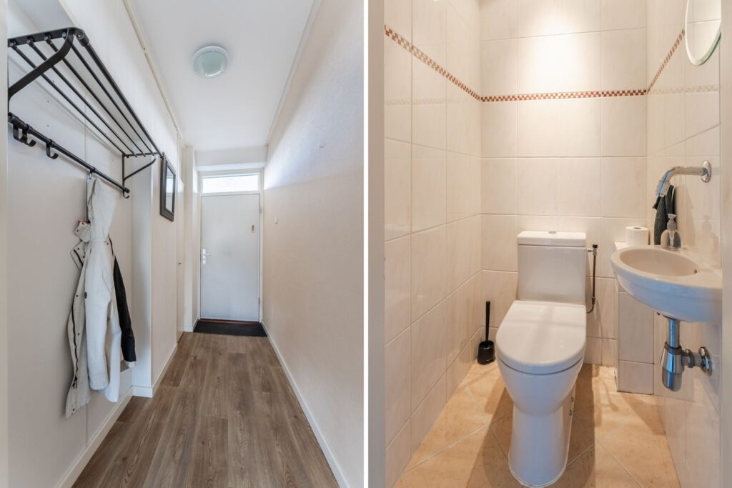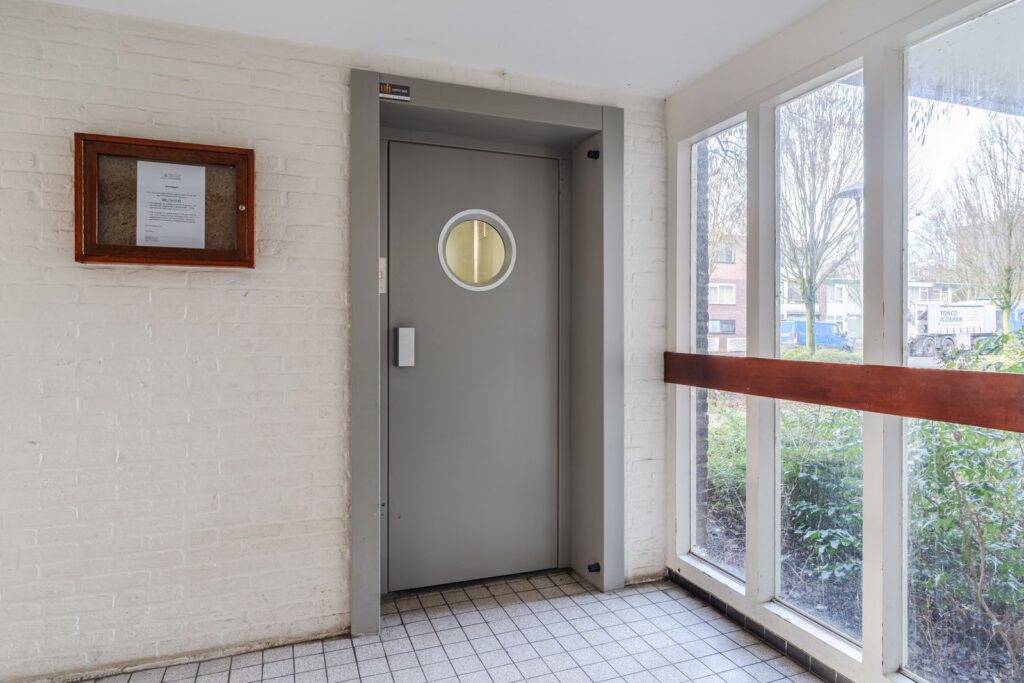 Je komt binnen via de afgesloten centrale entree op de begane grond, voorzien van brievenbussen en een belinstallatie. Vanuit hier neem je de trap of comfortabel de lift naar boven. Op de begane grond heb je bovendien toegang tot je eigen berging van circa 9 m² – ideaal voor fietsen, koffers of andere spullen die je niet dagelijks nodig hebt.