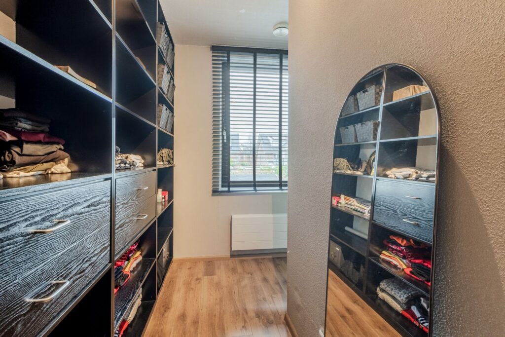 Overloop met trapopgang. Royale slaapkamer aan de achterzijde met inloopkast (voorheen een extra slaapkamer). Luxe badkamer met inloopdouche, ligbad, toilet, wastafelmeubel en vloerverwarming. Aan de voorzijde bevindt zich een ruime tweede slaapkamer.