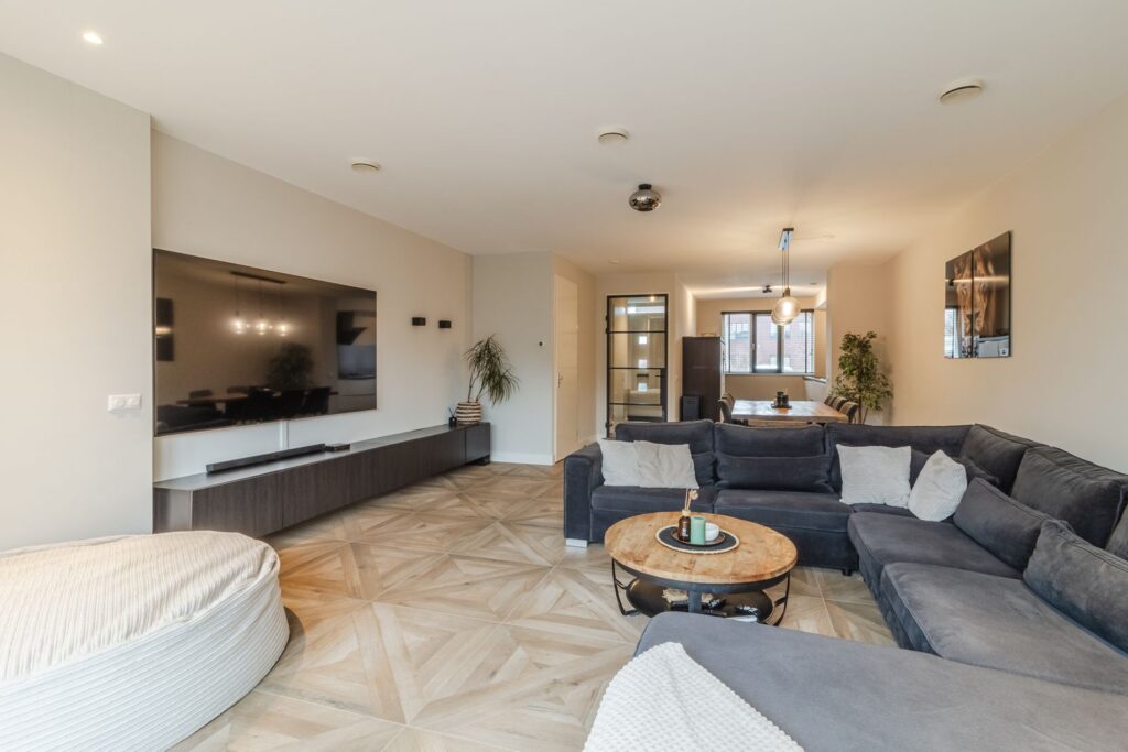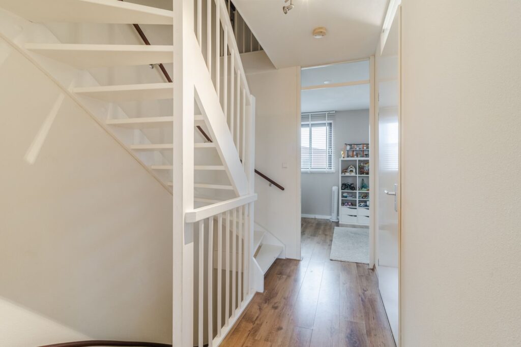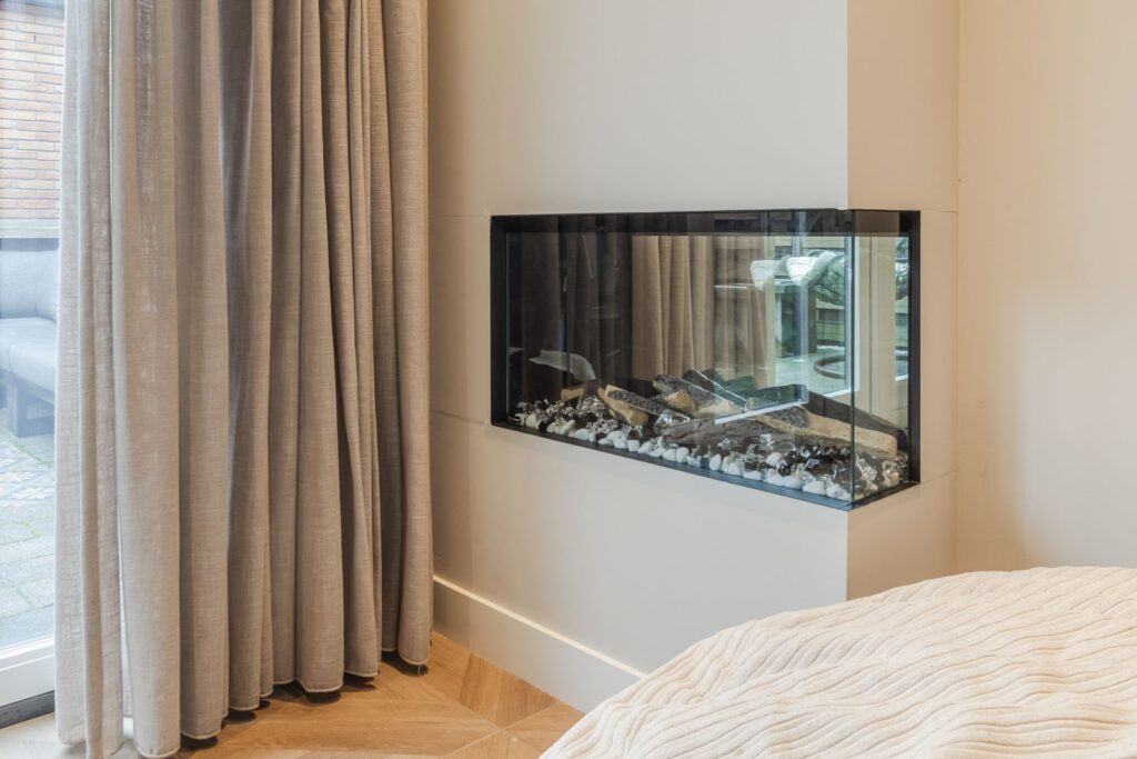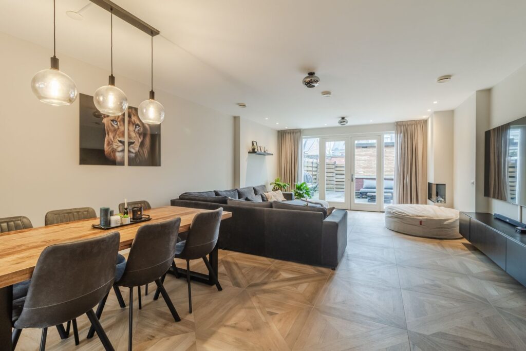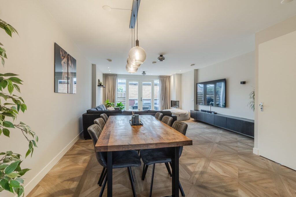 De lichte woonkamer is in mei 2024 uitgebouwd en biedt volop leefruimte. De elektrische sierhaard zorgt voor extra sfeer en via de openslaande deuren bereikt u de zonnige achtertuin van circa 7.00 x 5.40 meter, met stenen berging en een achterom naar het mandelige parkeerterrein. De gehele begane grond is voorzien van comfortabele vloerverwarming.