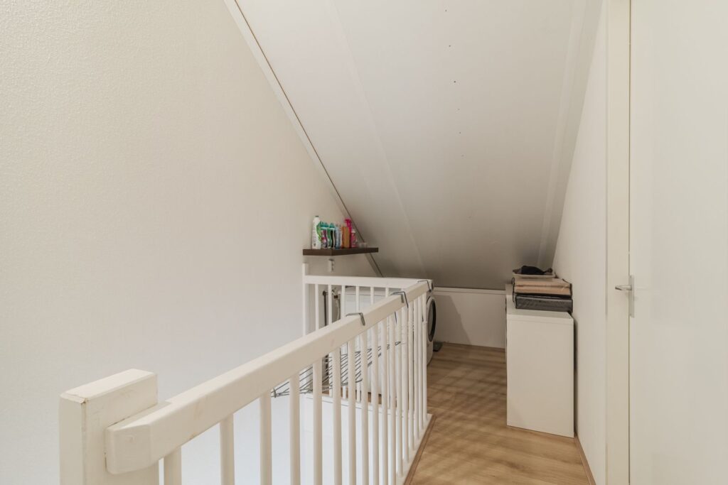 Overloop, praktische wasruimte met aansluitingen voor wasmachine en droger. Riante slaapkamer aan de achterzijde met dakkapel, wat zorgt voor extra licht en ruimte. Daarnaast een berging/stookruimte met warmte-terugwin-systeem, cv-ketel (Intergas HR, 2007) en zonneboiler.