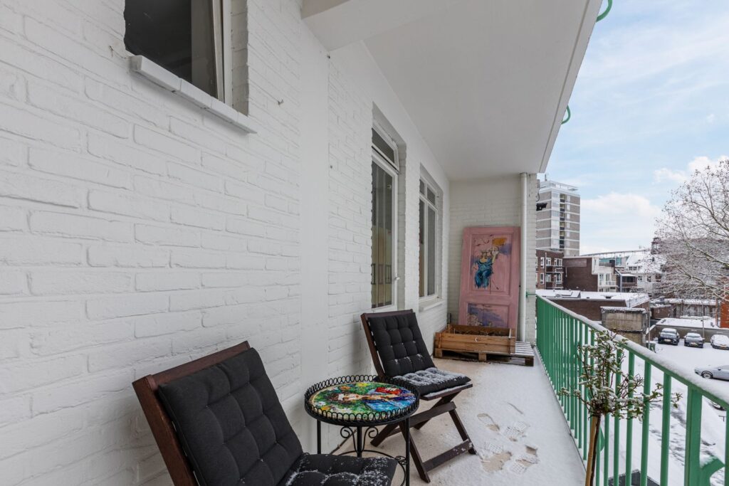 • Master-bedroom: Een royale slaapkamer aan de rustige achterzijde met een praktische inbouwkast. Vanuit hier stap je direct op het grote balkon op het zuiden voor een kop koffie in de volle ochtendzon.