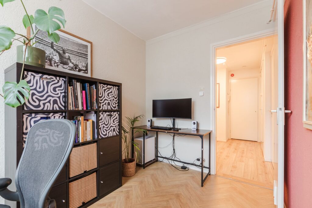 • Tweede slaapkamer / werkkamer: Gelegen aan de voorzijde, ideaal als rustige thuiswerkplek. Deze kamer geeft toegang tot het tweede balkon op het noorden voor natuurlijke koeling in de zomer.