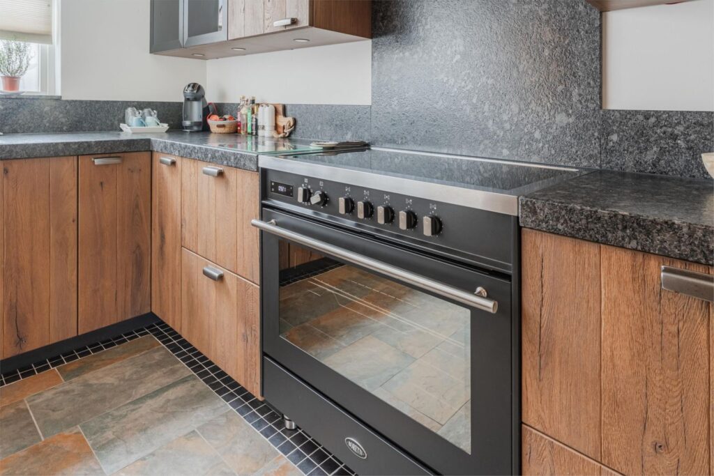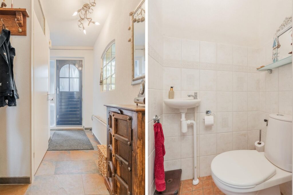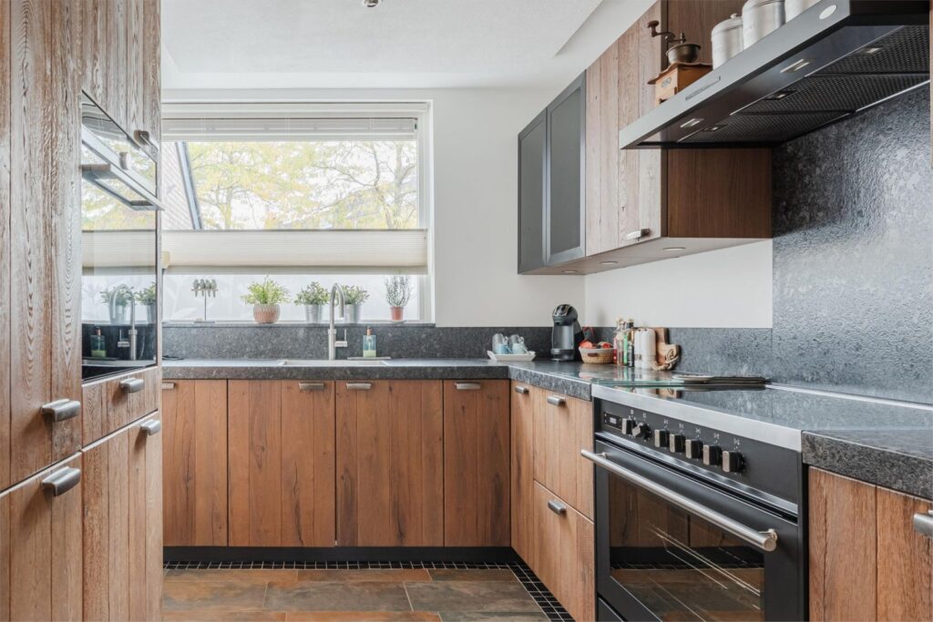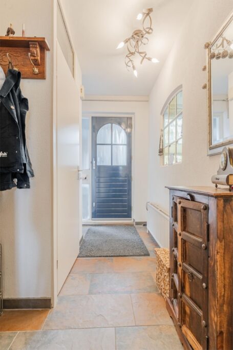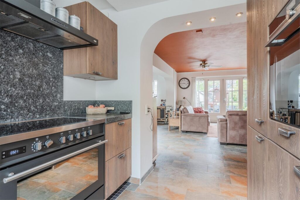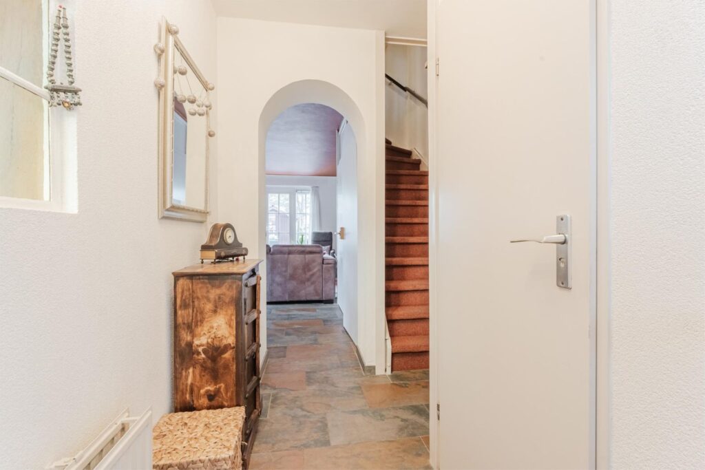 Via de overdekte voordeur kom je in een ruime gang met toilet en trapopgang naar de eerste verdieping en die toegang biedt tot de lichte, ruime tuingerichte woonkamer met plavuizen vloer en vloerverwarming met openslaande deuren aan zowel de voor- als achterzijde – ideaal voor een binnen-buiten leef gevoel. De moderne keuken is voorzien van diverse inbouwapparatuur en sluit perfect aan bij het eigentijdse karakter van de woning. Zowel de voor- als achtertuin bieden volop privacy en ruimte om te genieten.