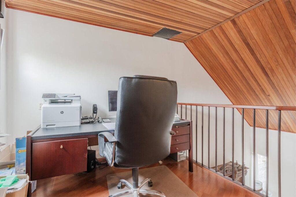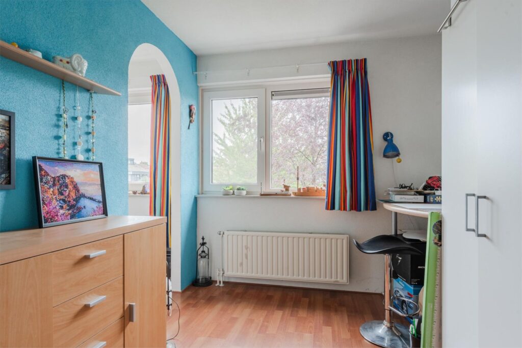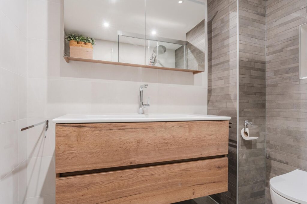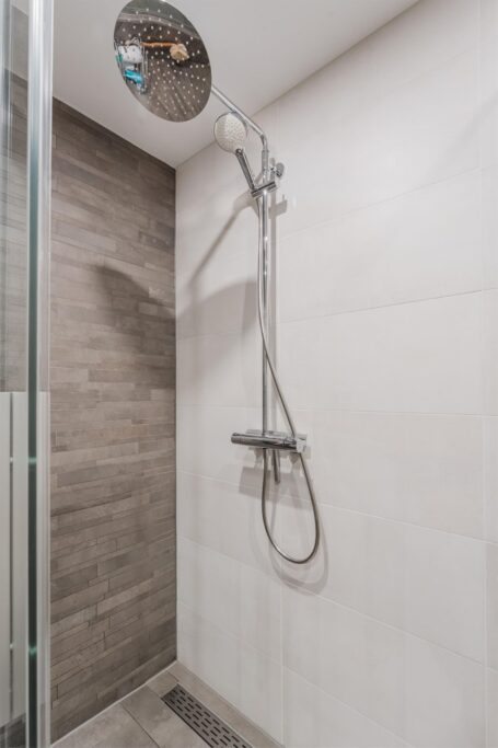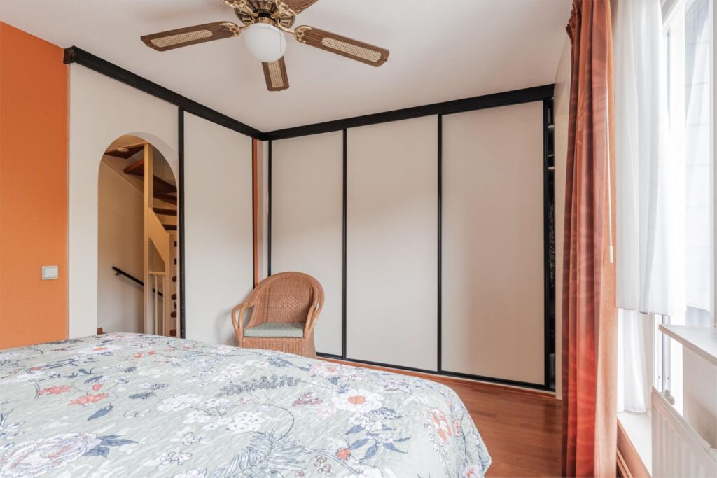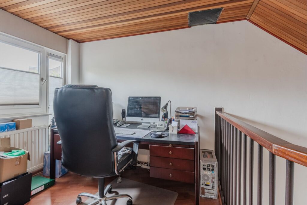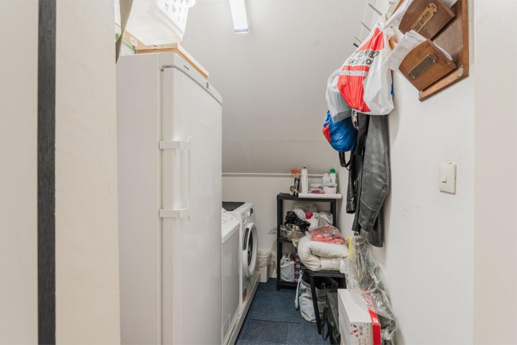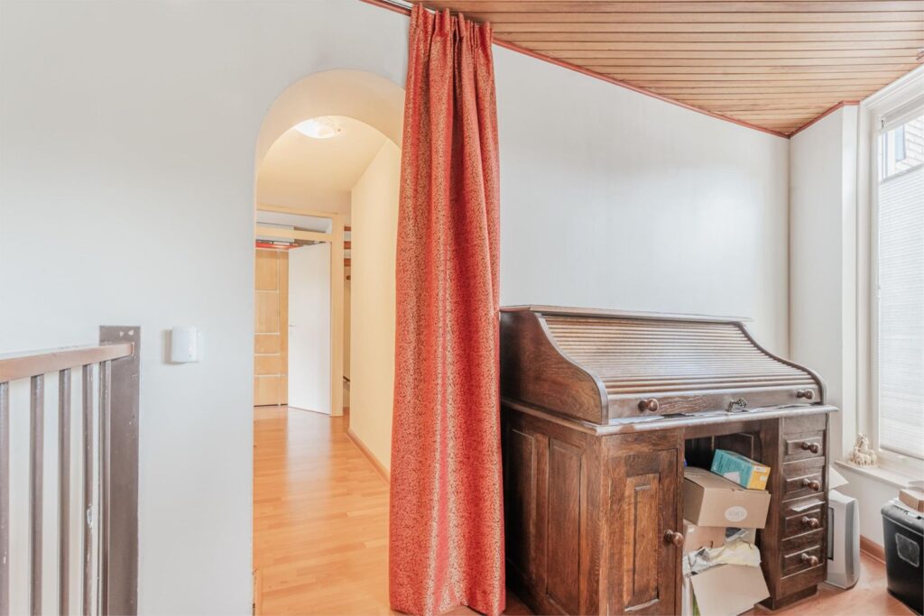 Op de eerste verdieping vind je de royale master bedroom met kastenwand, een praktische wasruimte met aansluitingen voor wasmachine en droger én de PV-omvormer. De tweede slaapkamer is extra ruim door een doorgebroken muur en kan eenvoudig opnieuw worden gesplitst indien gewenst. De moderne badkamer is stijlvol ingericht met een ruime inloopdouche, luxe afwerking en tweede toilet, plavuizen vloer met vloerverwarming. Verder beschikt deze verdieping over een ruime inloopkast en een vide voor mogelijkheid tot bv kantoor of het realiseren van een extra (slaap)kamer. De gehele verdieping is laminaat voorzien.