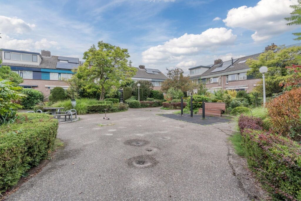 Aan de voorzijde bevindt zich een ruime berging en een eigen parkeerplaats op eigen terrein De woning ligt aan een sfeervolle binnentuin, waarvan je mede-eigenaar wordt. Hier bevindt zich ook een gezamenlijke feestruimte, ideaal voor buurtborrels of verjaardagen. Op slechts 100 meter afstand vind je een basisschool en een speelweide, perfect voor jonge gezinnen.