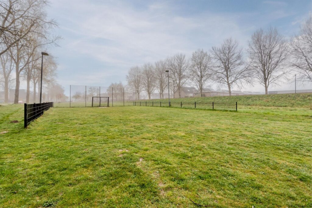 Voortuin met entree tot de woning. Hal is voorzien van een meterkast en geeft toegang tot de toiletruimte en de woonkamer. In de hal is ook de trapopgang naar de 1e verdieping. Het toilet is voorzien van een zwevend toilet, een fontein en tegelwerk tot aan het plafond. De grote woonkamer van meer dan 30 m2, kenmerkt zich door een schuine en hoog plafond en grote ramen die voor veel natuurlijk licht zorgen. Je hebt vanuit de woonkamer fraai zicht op de achtertuin (patio). Een schuifpui geeft vanuit de woonkamer toegang tot deze zonnige patio waar je heerlijk vrij kan zitten en kinderen beschermd kunnen spelen. Aan de voorzijde van de woning bevindt zich de keuken. Deze beschikt over inbouwapparatuur waaronder: 4-pits inductiekookplaat, vaatwasser, oven en afzuigkap. De schuur bevat een garage deel met kanteldeur en een werk/hobby-ruimte waar ook de aansluitingen voor een wasmachine aanwezig zijn. Beide ruimtes zijn vanuit de patio en de voortuin bereikbaar.
