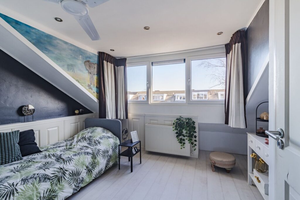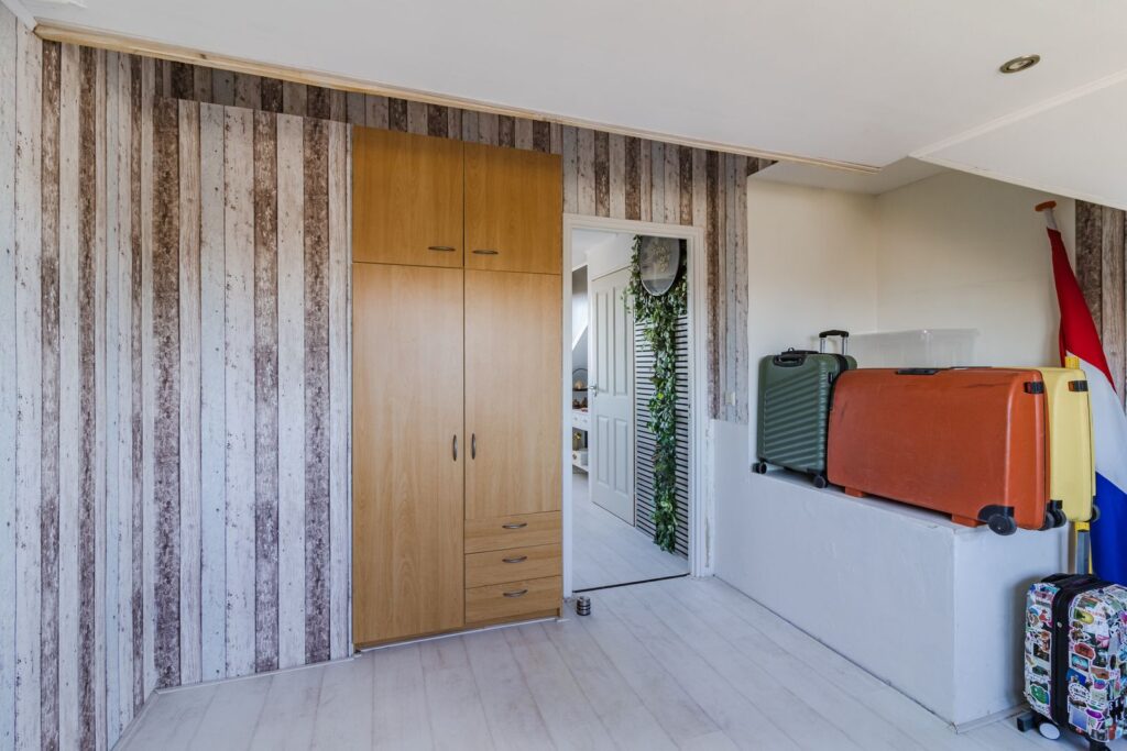 Op deze verdieping bevinden zich nog twee slaapkamers, beide voorzien van een dakkapel aan de voor- en achterzijde. Achter de knieschotten is praktische bergruimte aanwezig. De dakbedekking van de dakkapellen is in 2023 vernieuwd.