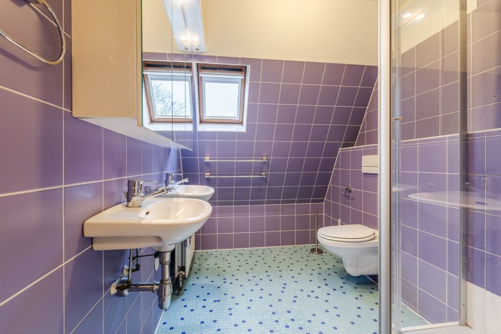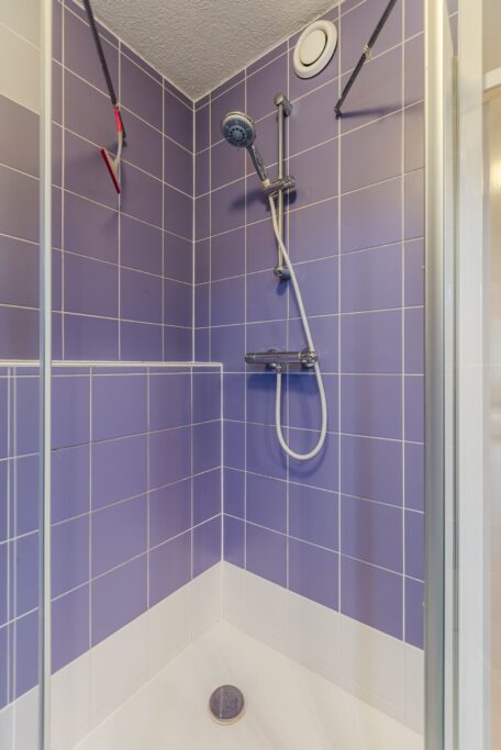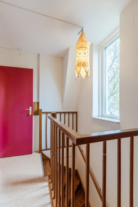 1e VERDIEPING: Overloop met toegang tot drie slaapkamers, badkamer en cv. Twee slaapkamers aan de voorzijde met dakkapel en een slaapkamer aan de achterzijde met groot dakraam. De badkamer is voorzien van een douche, twee wastafels en toilet.