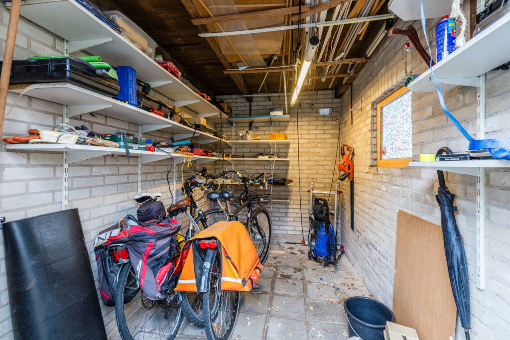 TUIN: Voortuin en diepe achtertuin op het zuidoosten met stenen berging, carport en achterom. De openbare parkeerplaats achter het huis biedt genoeg parkeergelegenheid voor bezoek.