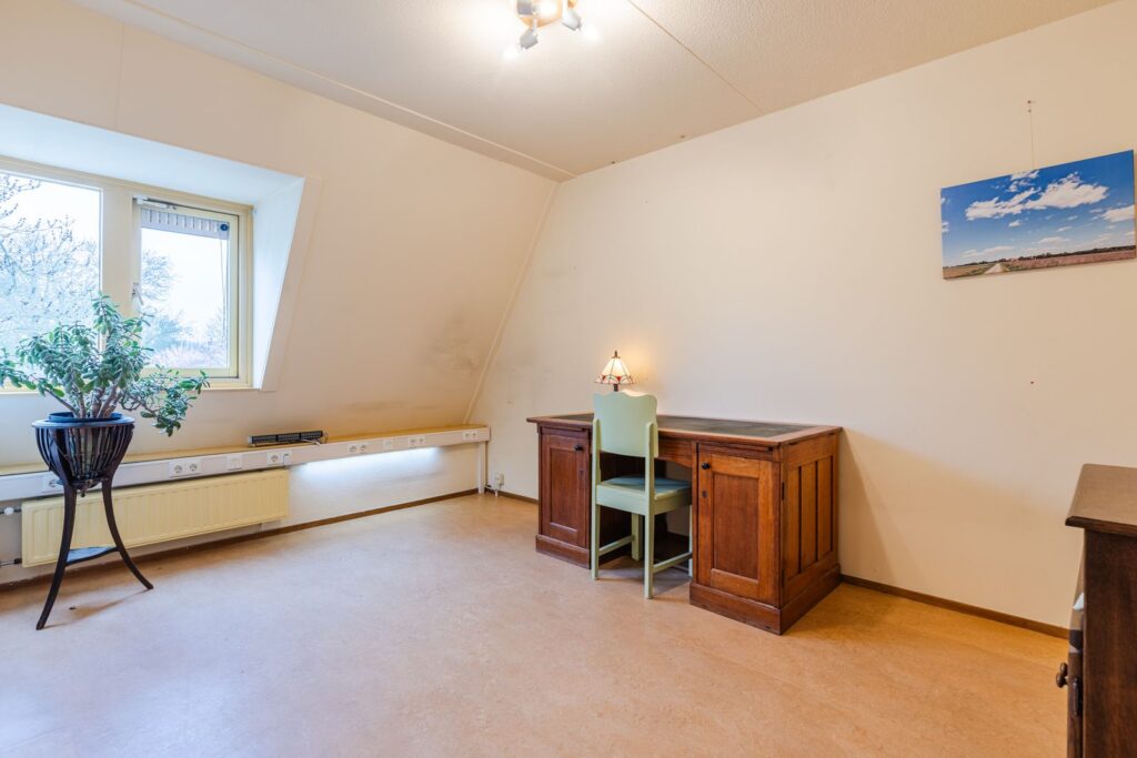 2e VERDIEPING: Via een vaste trap bereik je de overloop met inbouwkasten voor opslag. Verder is op de zolder een ruime slaapkamer gerealiseerd met inbouwkasten en eigen wastafel. Dakramen aan voor- en achterkant brengen veel licht in de ruimte.