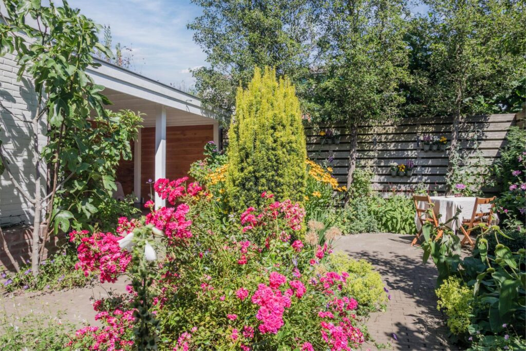 - hoekwoning met kleurrijke tuinen, liefdevol aangelegd door professionals