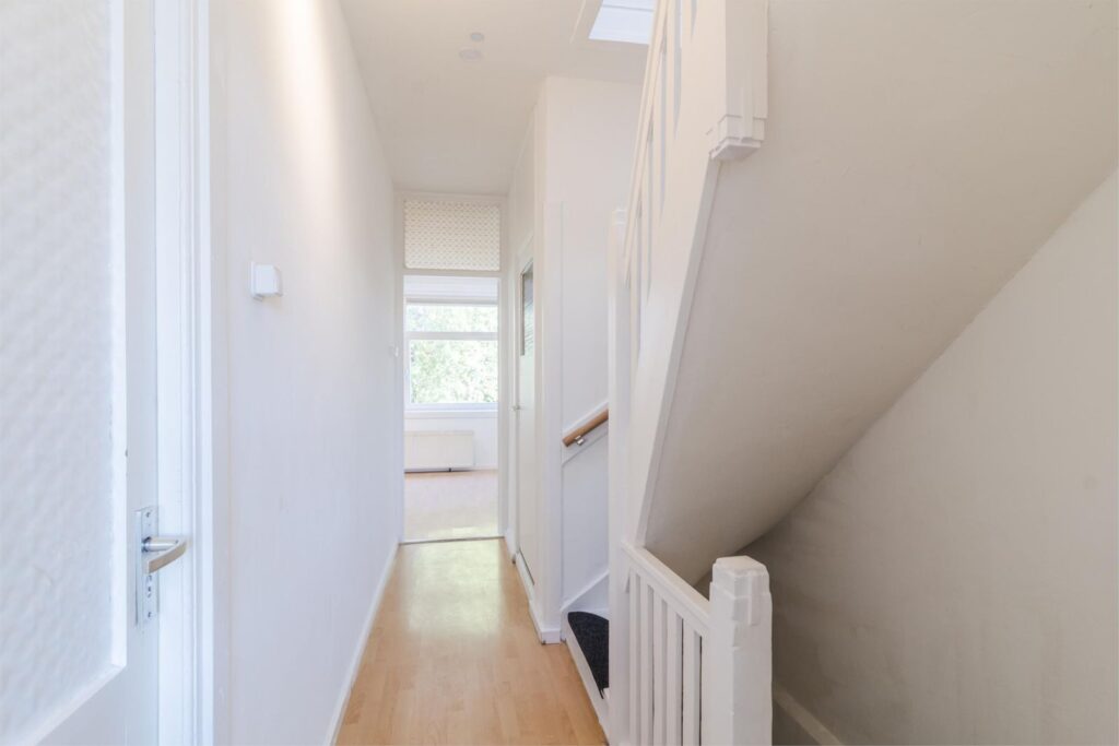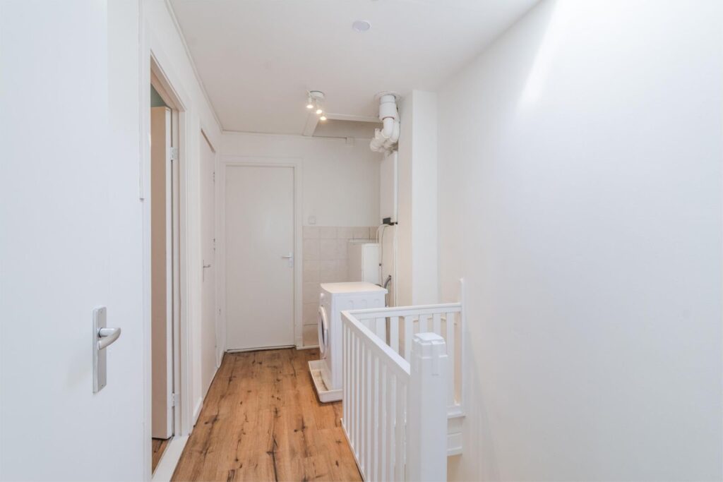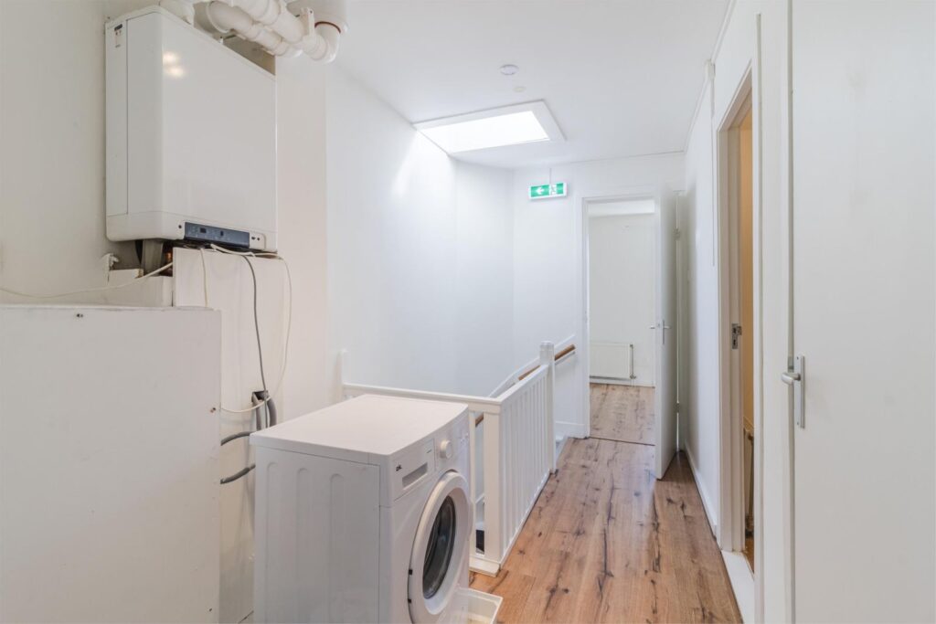 Op de overloop vind je de CV-combiketel (2021) en de aansluitingen voor wasmachine en droger. Vanuit hier heb je toegang tot de badkamer en maar liefst drie slaapkamers.