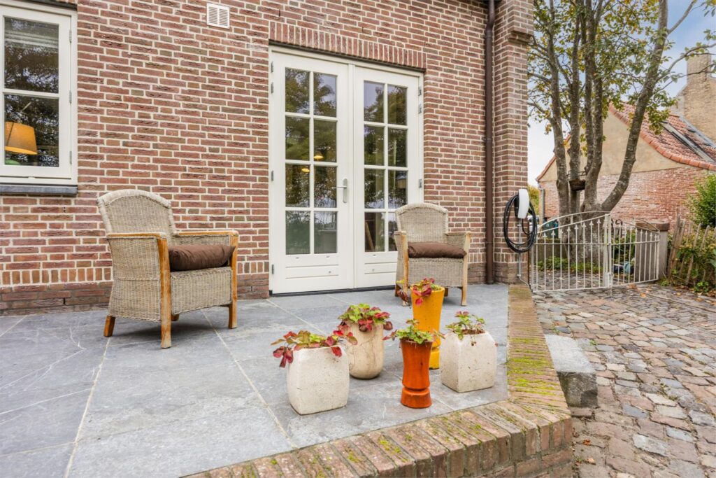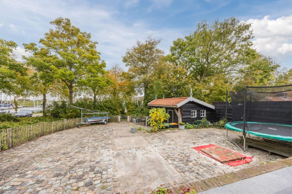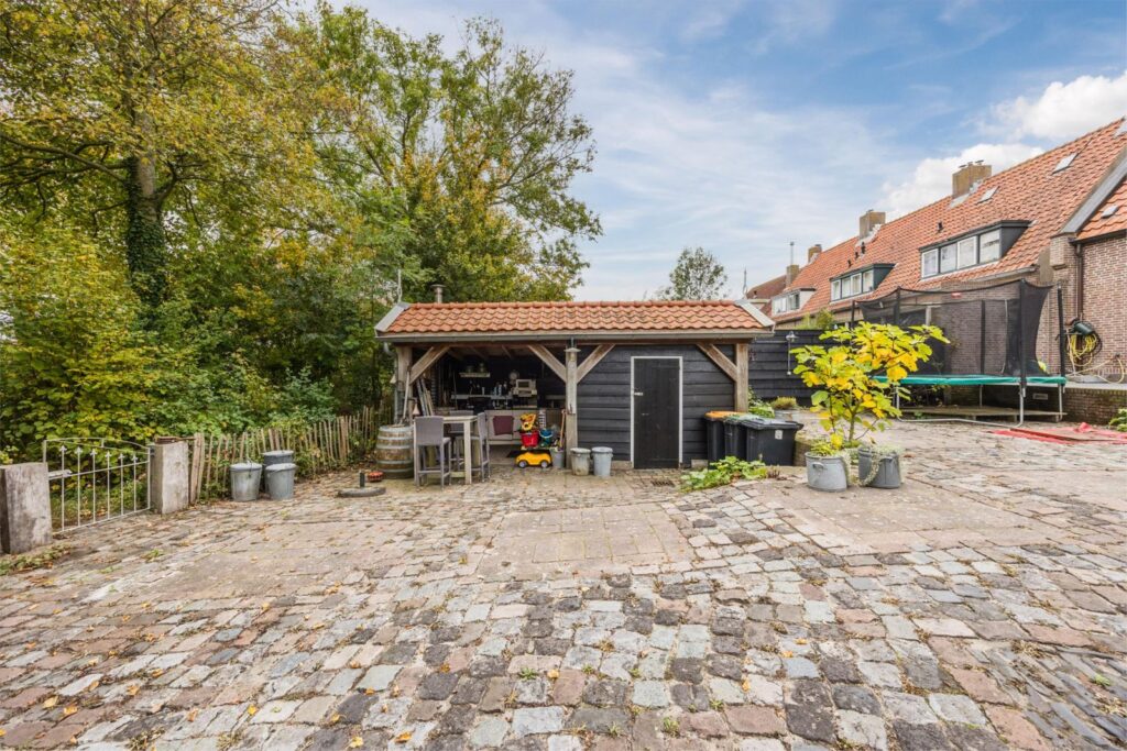 De achtertuin is lekker ruim, omheind en afgesloten door een toegangshek. U kunt uw autos in de achtertuin parkeren en opladen. In de tuin staat een degelijk gebouwde schuur met een dicht en een open gedeelte. Wateraansluiting voor tuinslang op het terras.