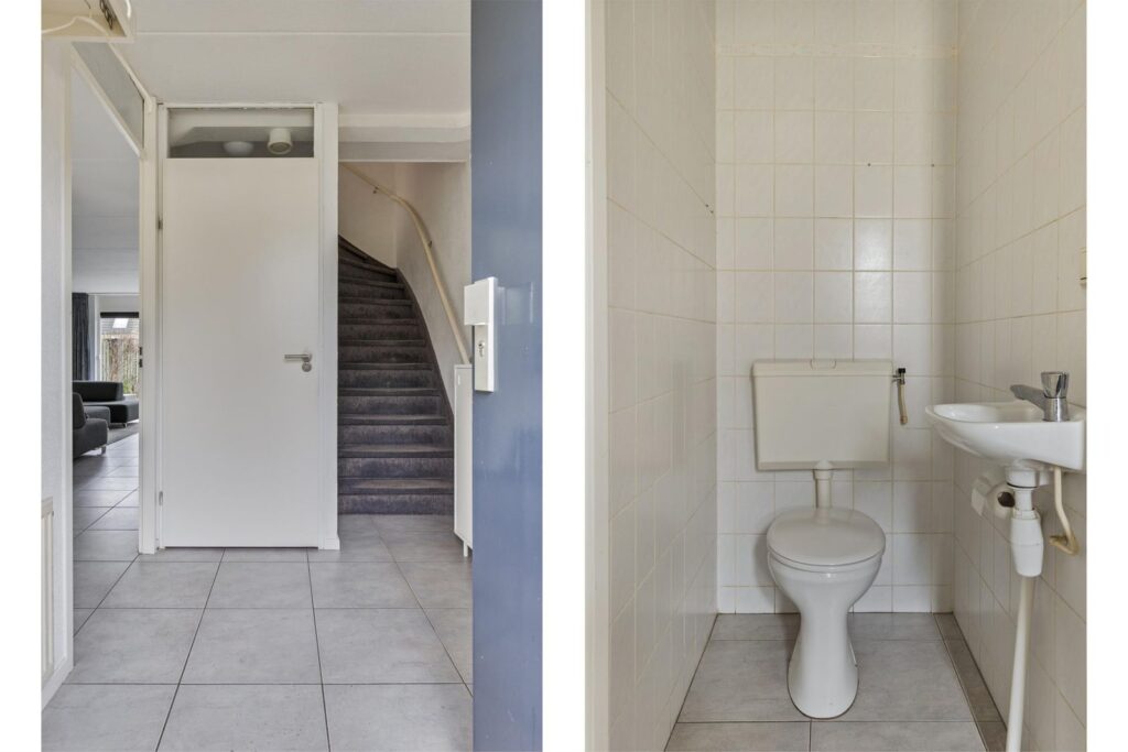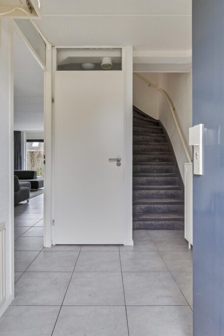 De entree is op de begane grond. Hier vindt u toilet, meterkast, trap naar de eerste verdieping en de keuken/woonkamer. Op de begane grond is vloerverwarming aanwezig.