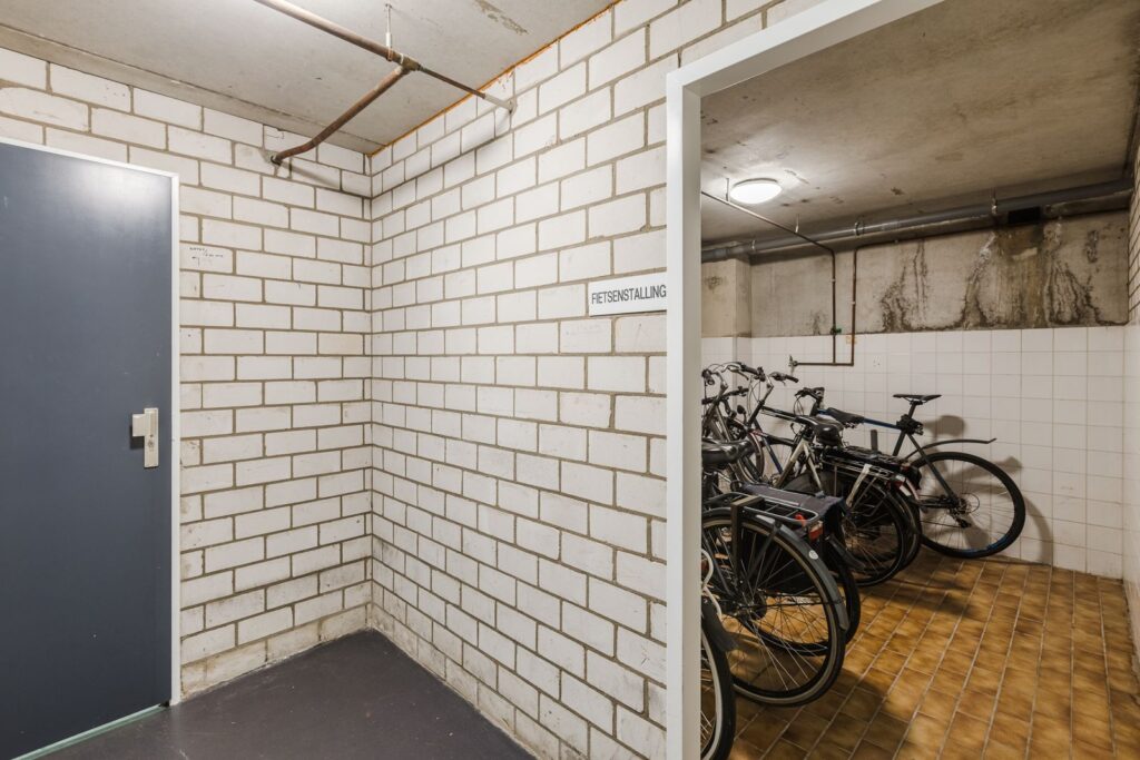 Zeer compleet met een eigen privéberging (5 m²) in de kelder, een gemeenschappelijke fietsenstalling in de kelder én een extra fietsenstalling achter het gebouw.