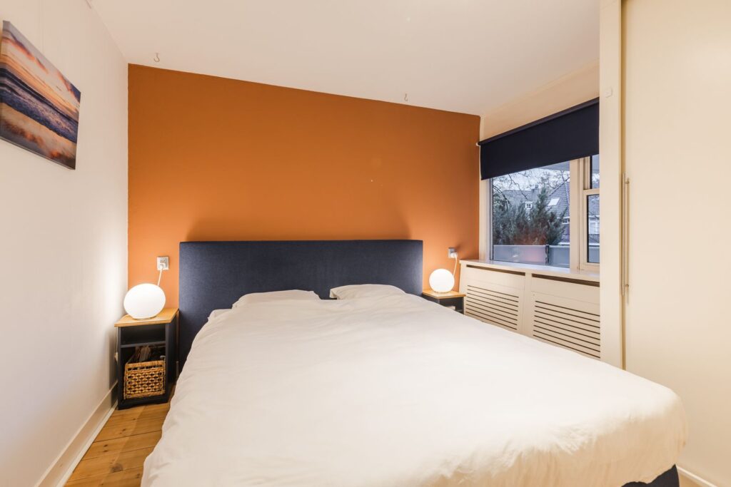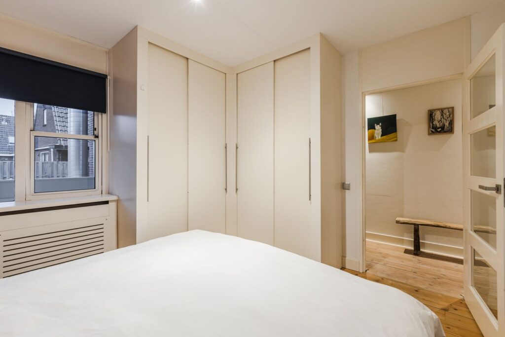 Het appartement beschikt over één ruime slaapkamer, voorzien van een praktische en grote inbouwkledingkast.