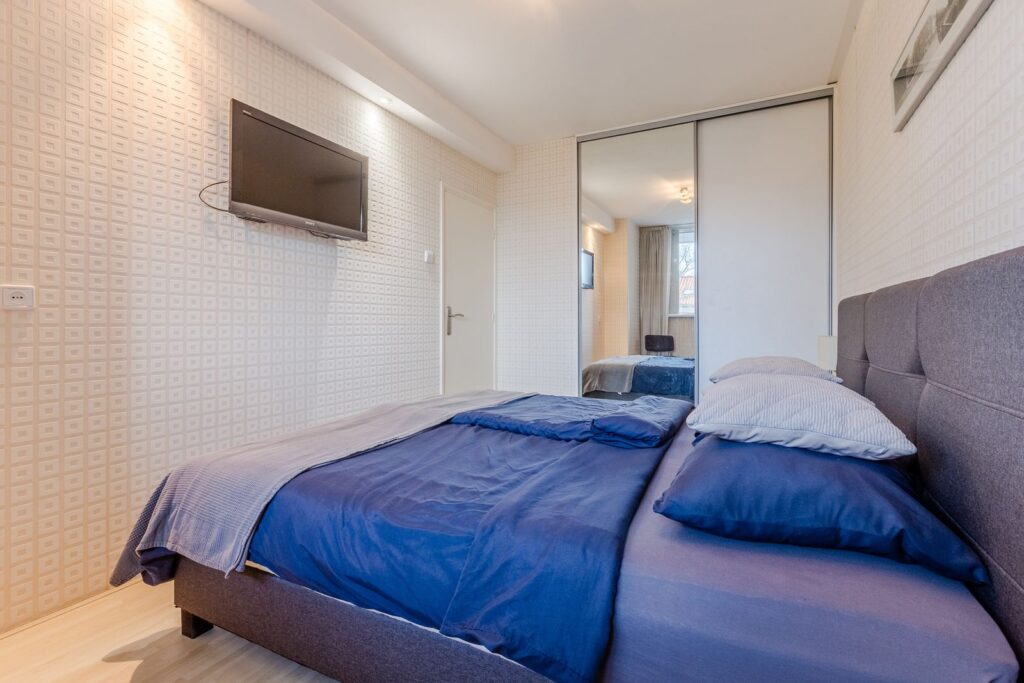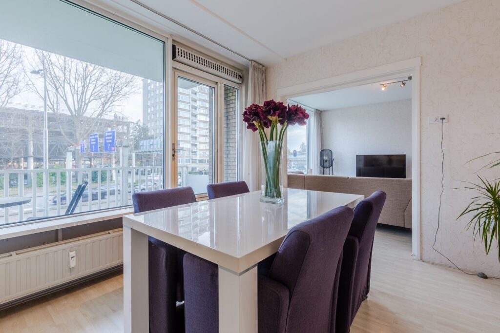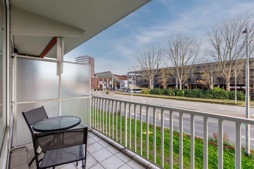 The spacious, sunny living room is located on the Stadshart side and therefore benefits from a lively view and plenty of natural light. The modern kitchen, located in the center of the apartment, features a contemporary layout and all necessary appliances. The dining room opens onto the balcony—a lovely spot for a morning cup of coffee or an evening glass of wine.