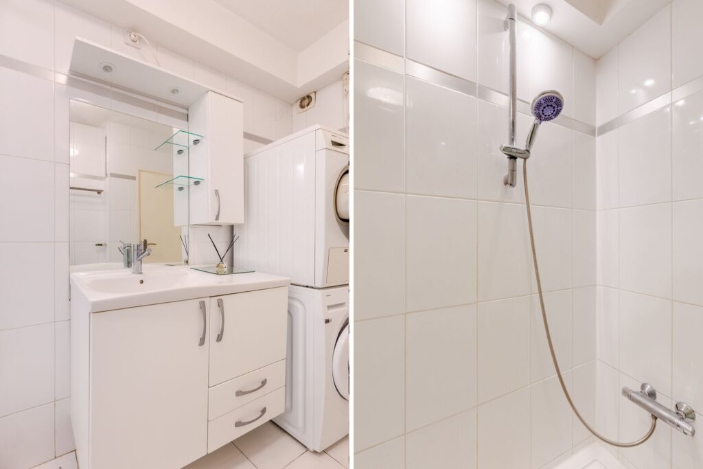 Centraal in het appartement ligt de vernieuwde badkamer (2025), compleet met wastafel en ruimte voor zowel wasmachine als droger. Het appartement beschikt daarnaast over een eigen ruime berging in het souterrain.