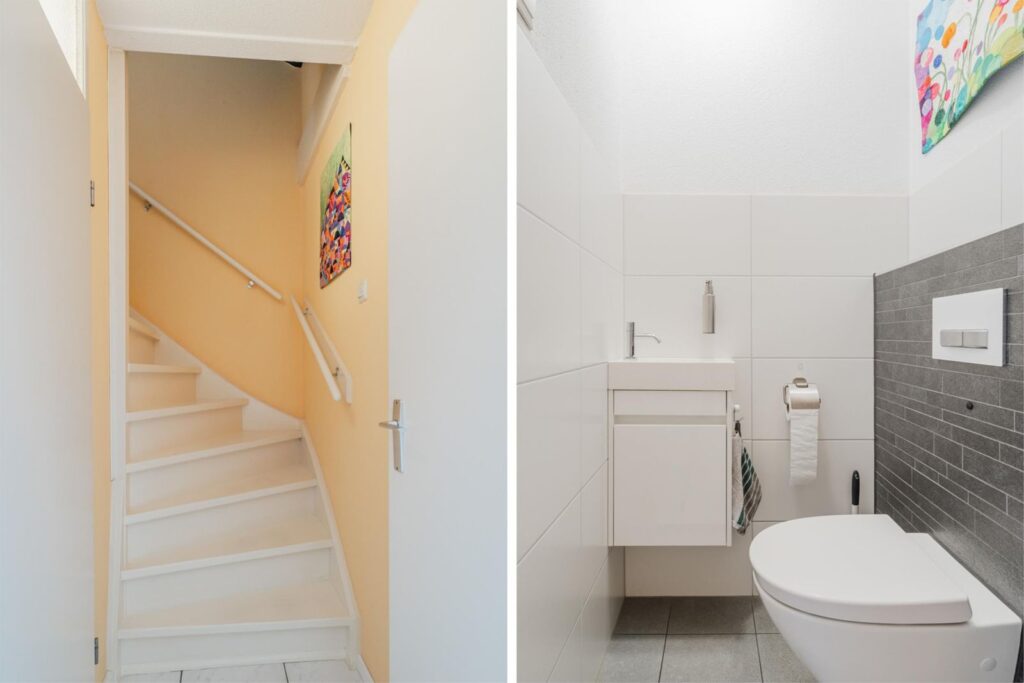 De overloop geeft toegang tot drie slaapkamers en een moderne badkamer (2016) met douche, wastafelmeubel en toilet. De CV-installatie (2019) is netjes weggewerkt in een aparte kast.