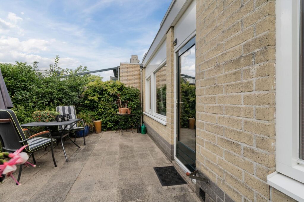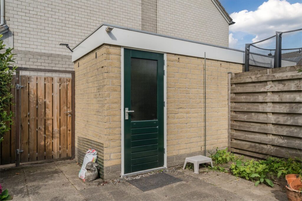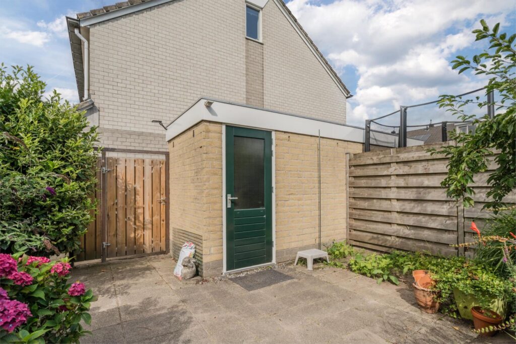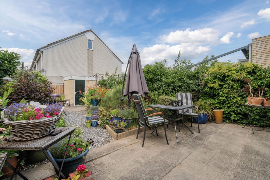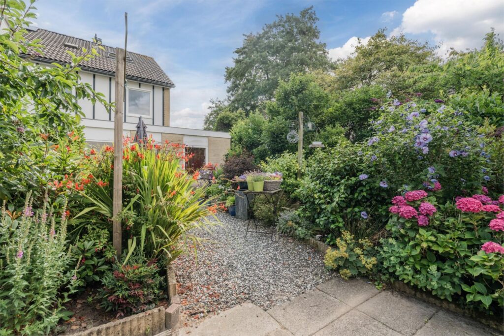 De woning beschikt over een verzorgde, brede voor- en achtertuin. De voortuin is opnieuw bestraat in 2022 en biedt ruimte voor meerdere auto’s. De zonnige achtertuin (zuidwest) is uitgerust met een stenen berging en een afsluitbare poort (2024).