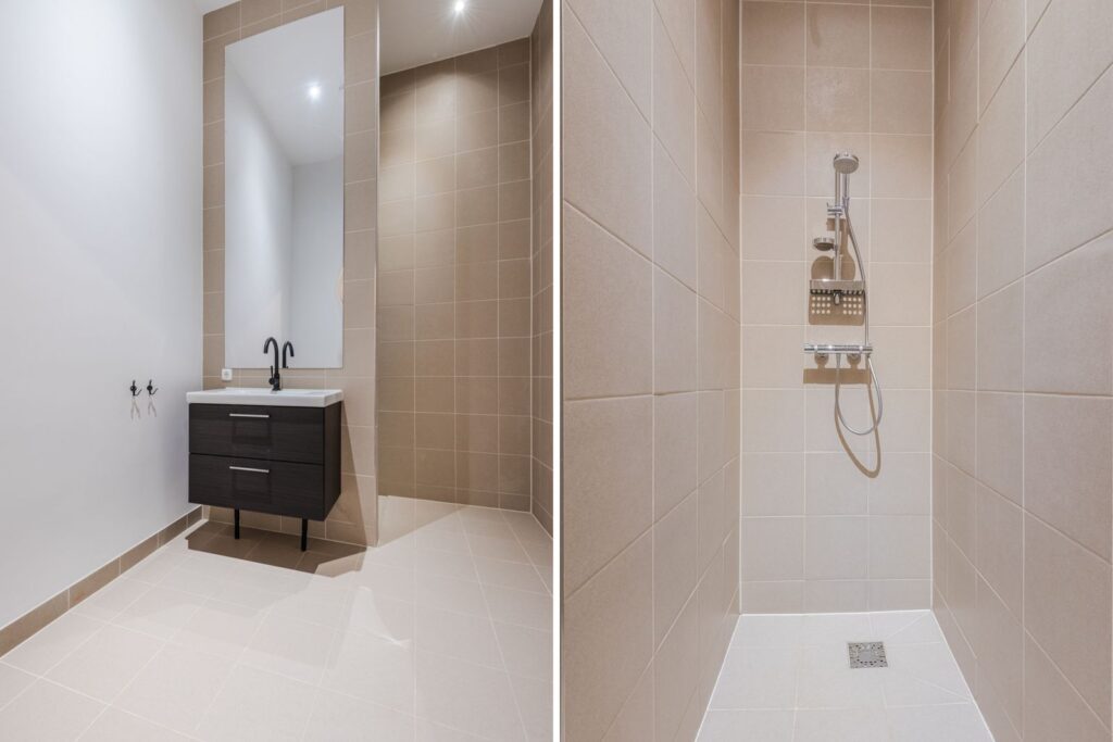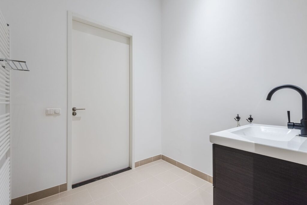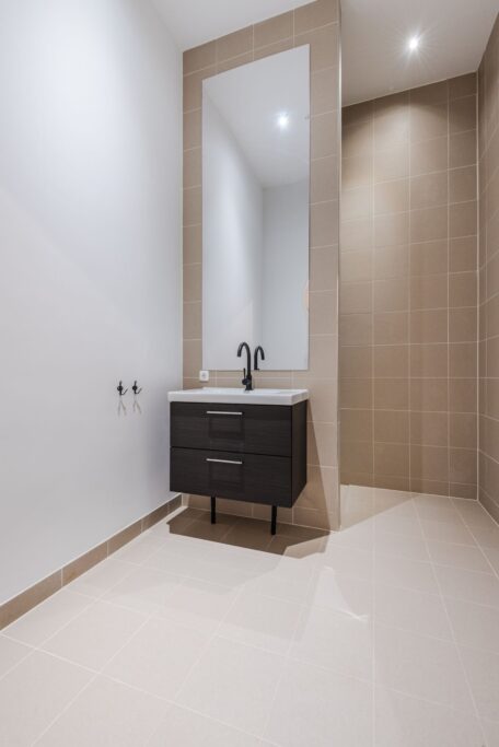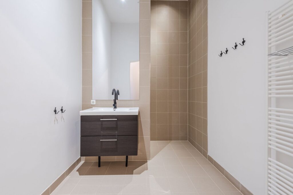 •Badkamer en sanitair: Een moderne badkamer met inloopdouche en designradiator, en een aparte, strak afgewerkte wc.