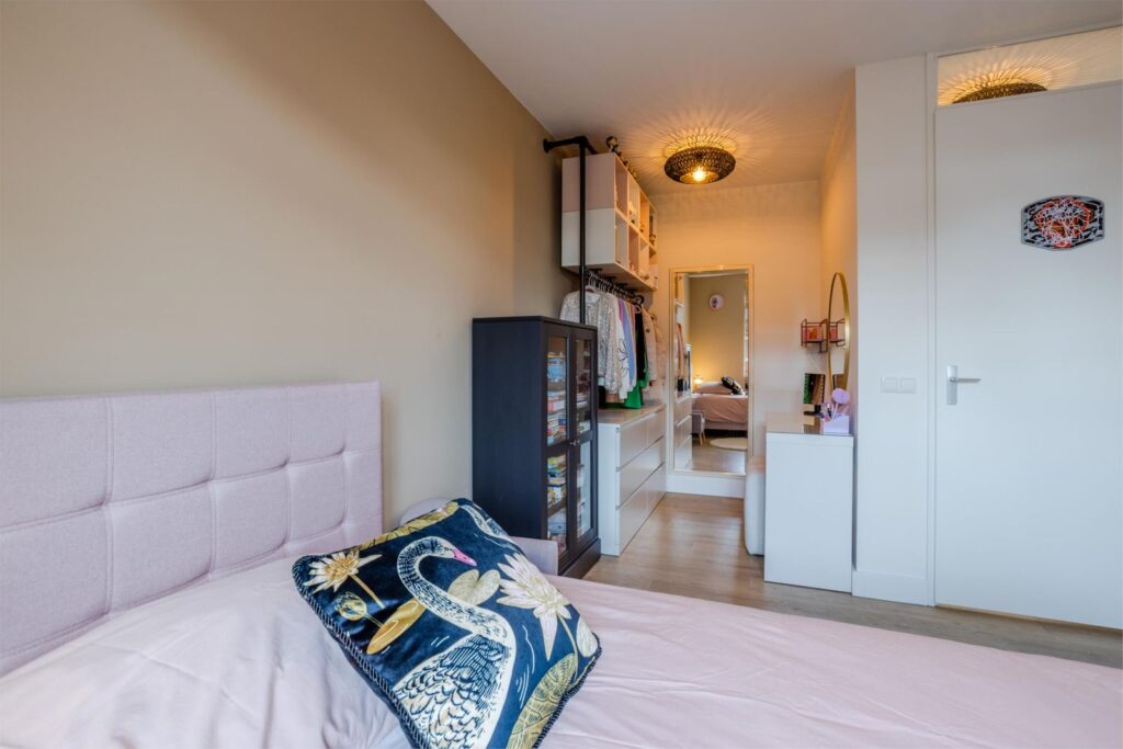De zolderverdieping is ingericht als royale ouderslaapkamer met knieschotkasten, vliering en een nette, uit het zicht, technische ruimte met plek voor witgoed, omvormer, warmtepomp en wtw-unit.