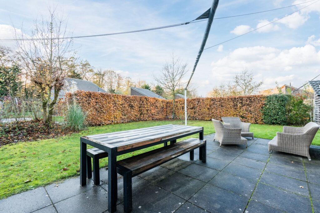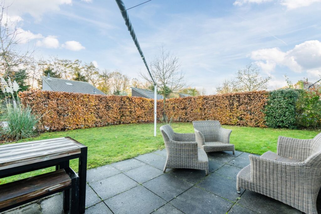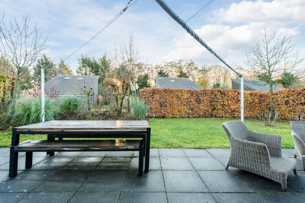 De woning wordt omgeven door een ruime tuin met veel privacy. Door de groene ligging en het royale perceel is er altijd een prettige plek in zon of schaduw. Een fijne buitenruimte die het huis het hele jaar door aantrekkelijk maakt.
